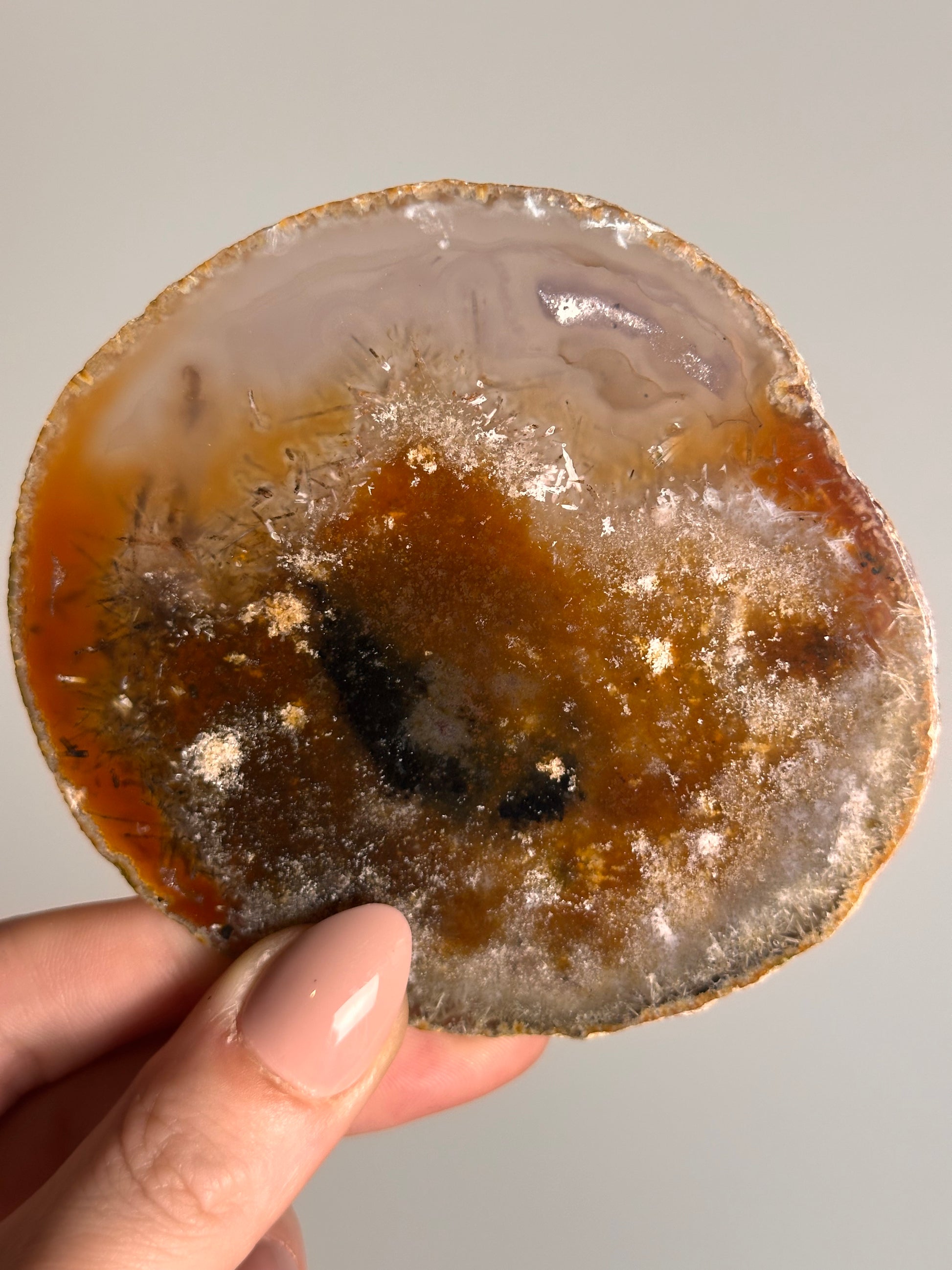 Een agaat schijf is meer dan een decoratiestuk het is een stukje kunst. Je kunt haar combineren met een standaard of een waxinelichthouder waar je de schijf in kunt plaatsen - beide zijn los verkrijgbaar.