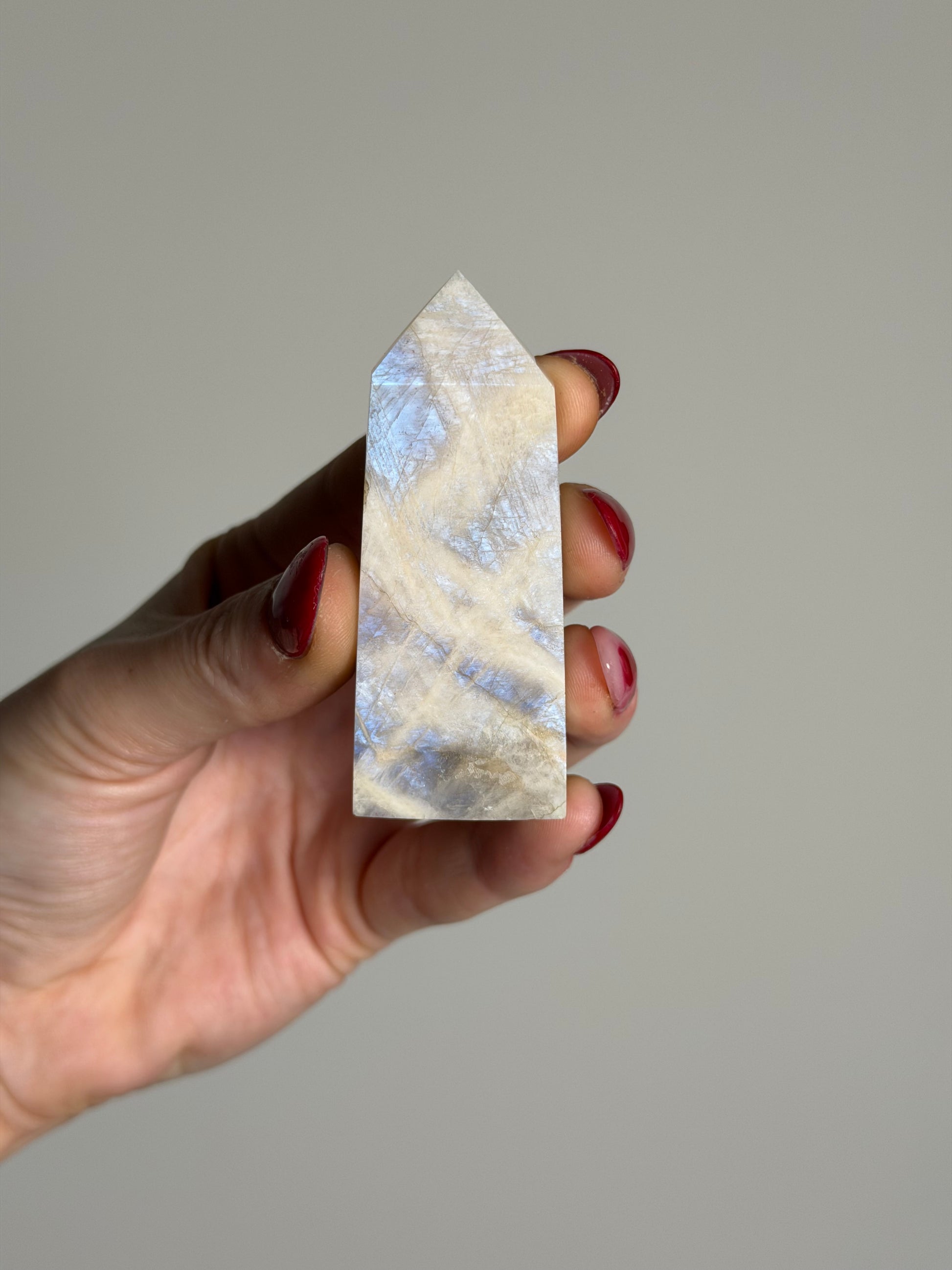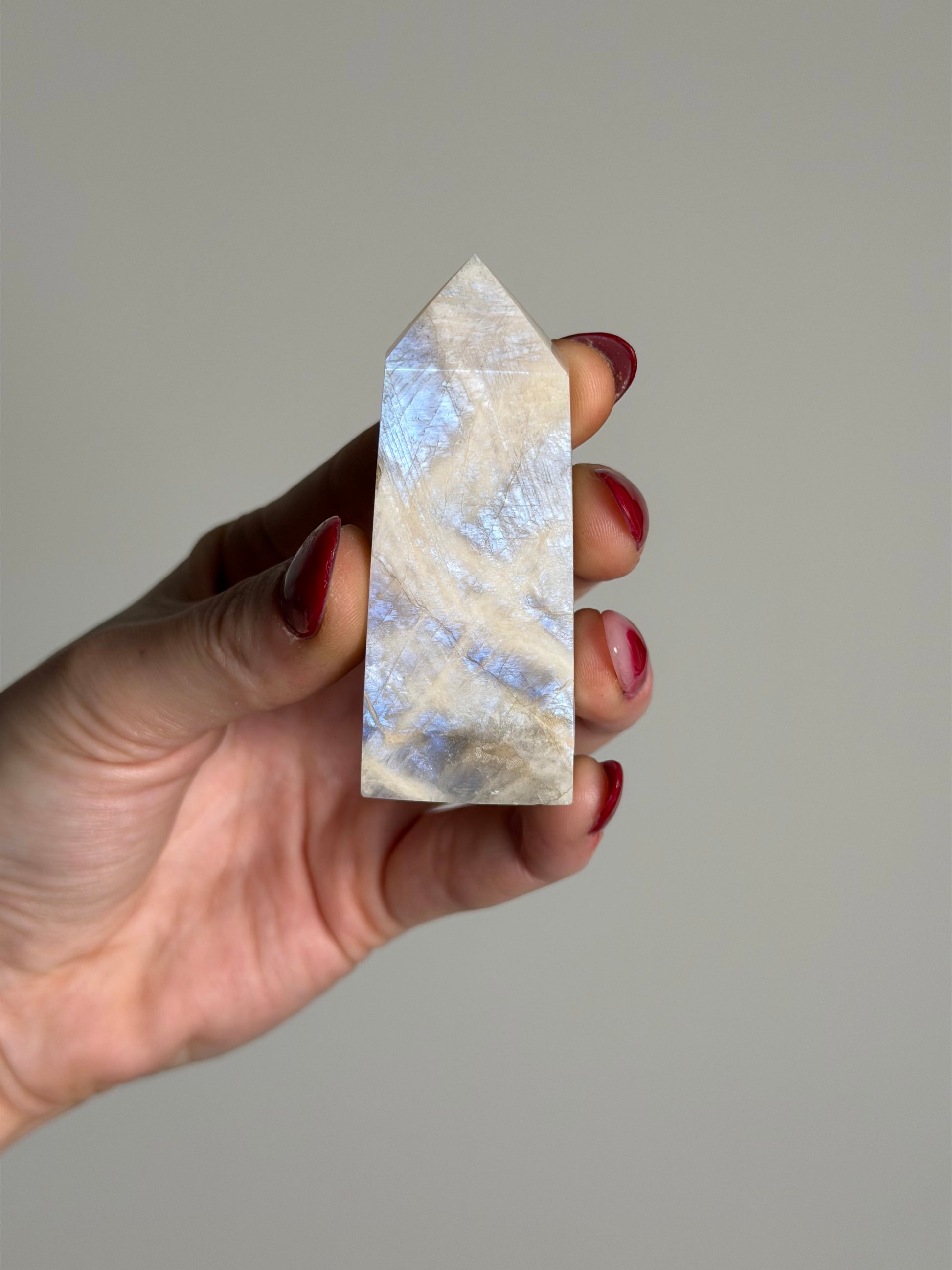 Deze maansteen toren heeft een prachtige blauwe flash!
