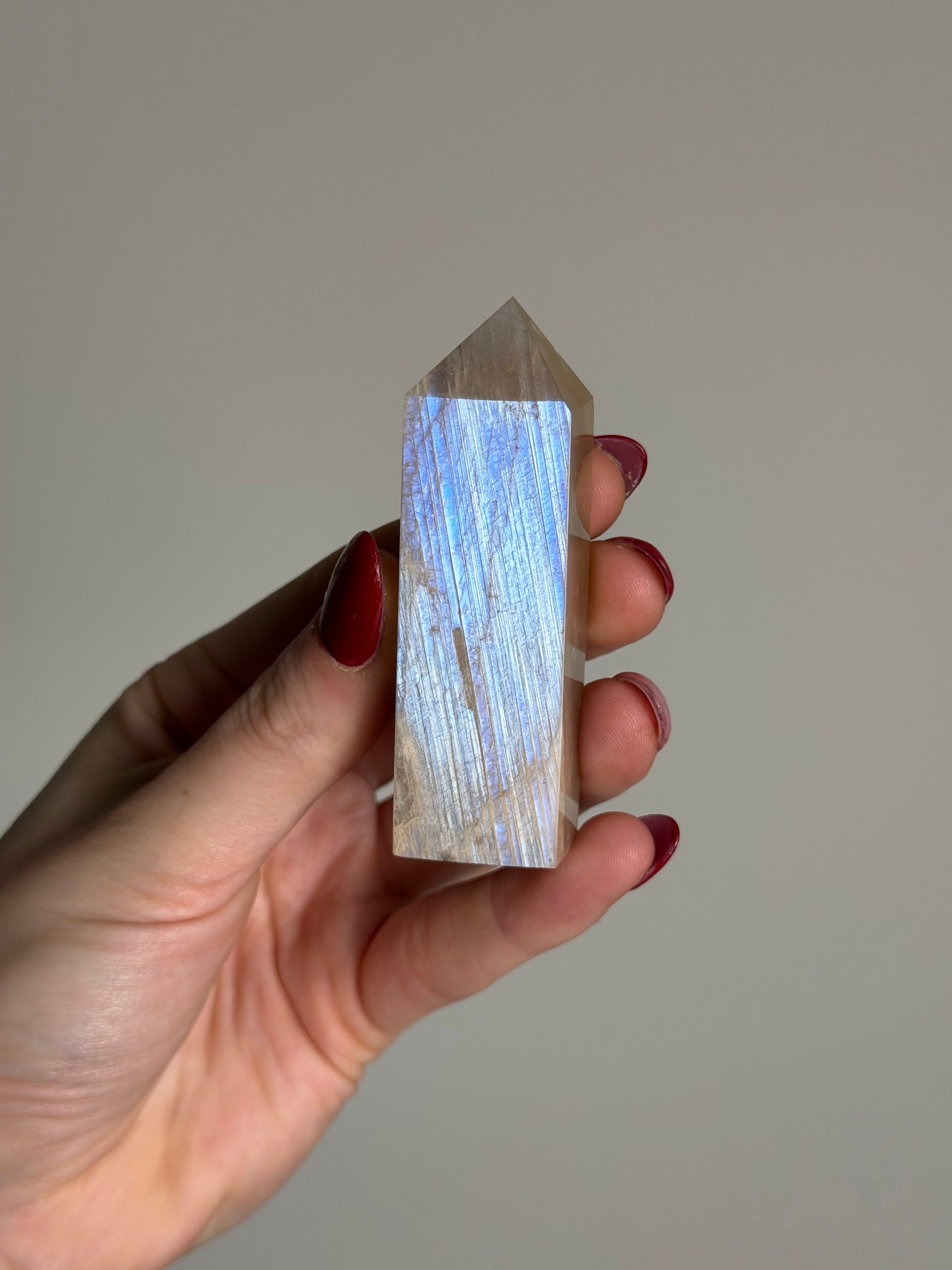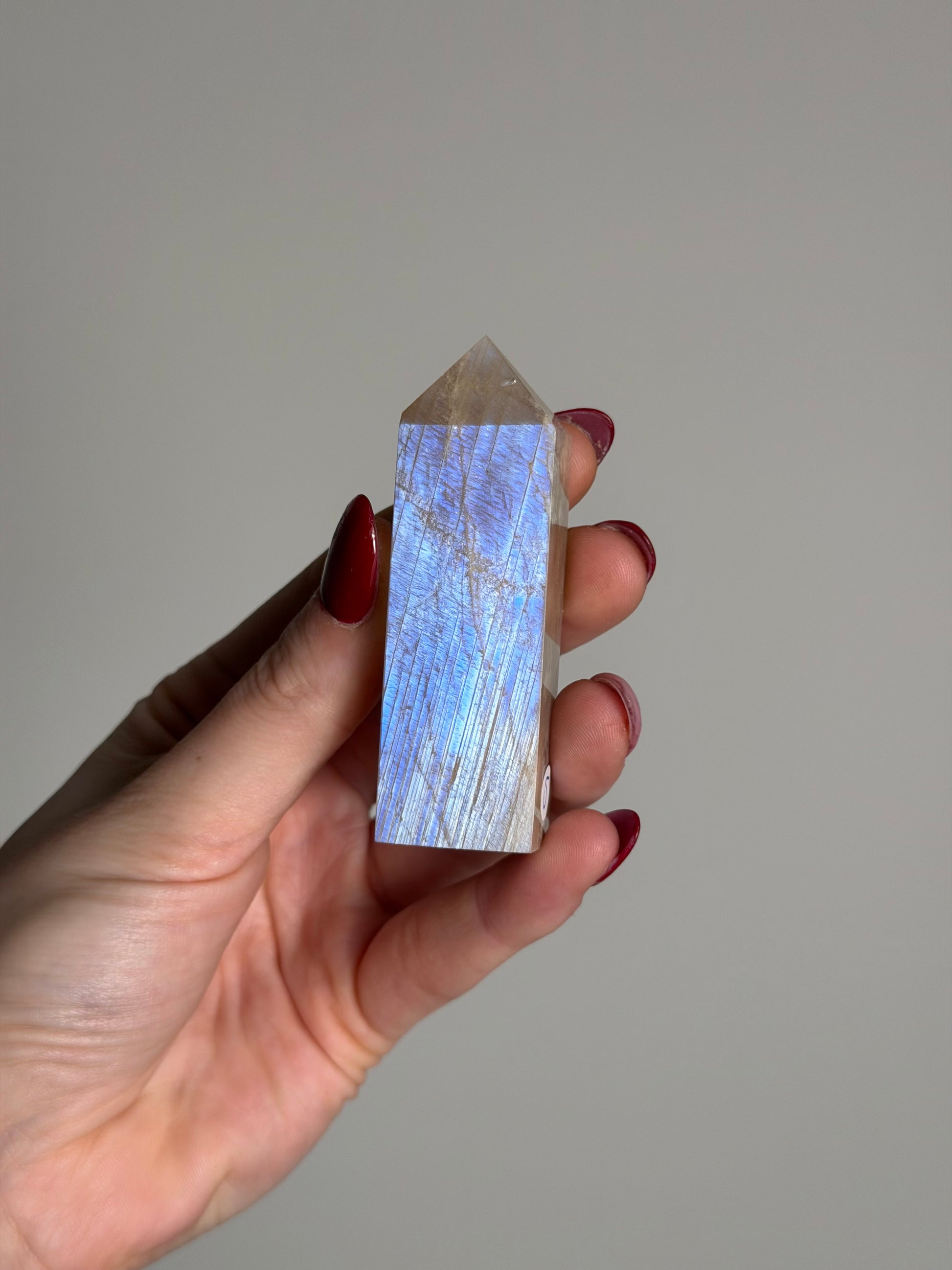 Deze maansteen toren heeft een prachtige blauwe flash!