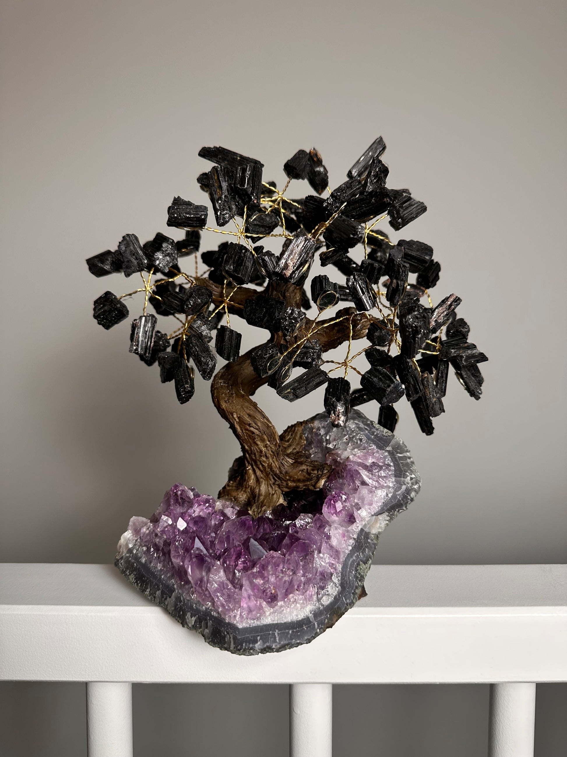 🌿 Grote Toermalijn & Amethist Edelsteenboom