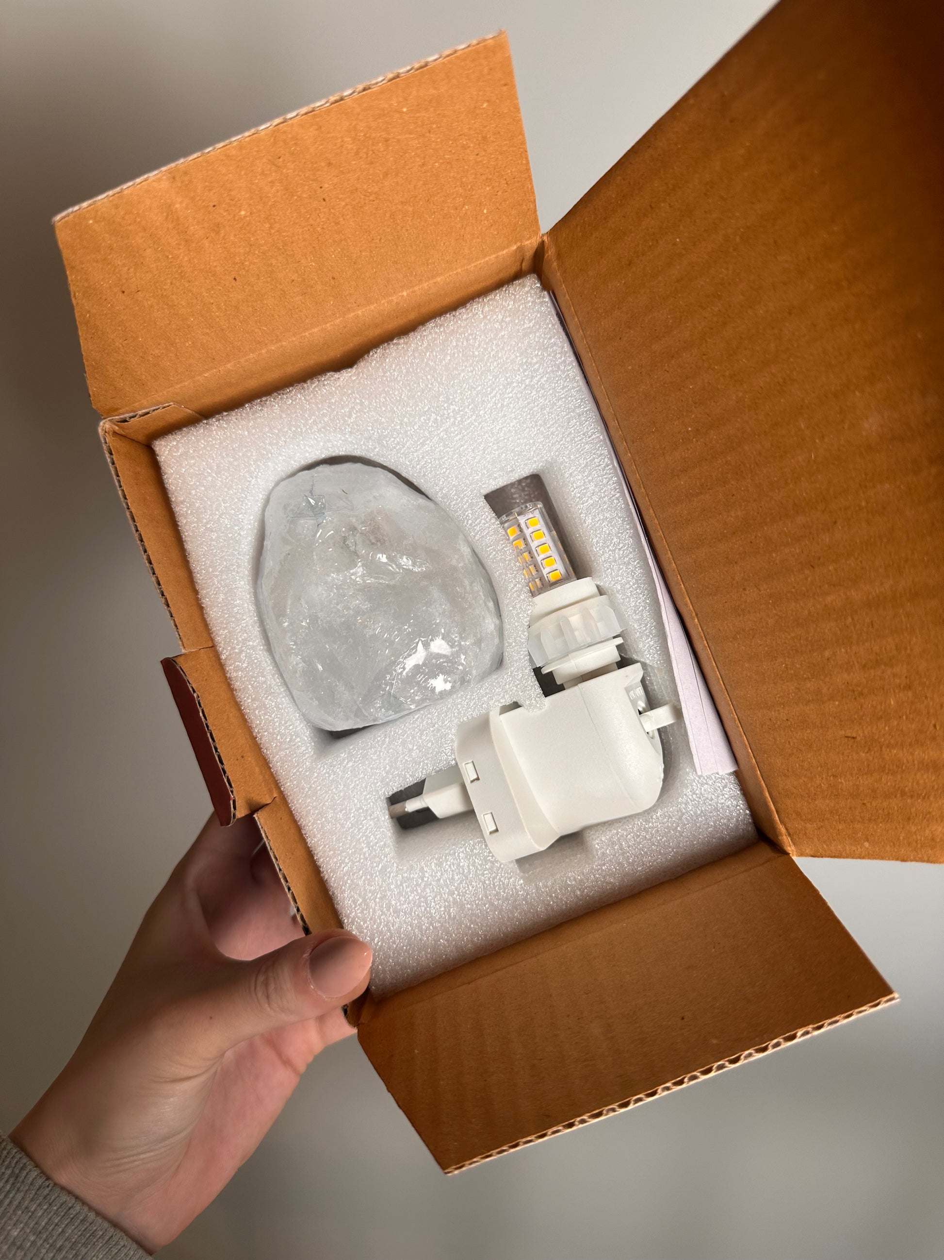 Zoutsteen staat bekend om zijn zuiverende eigenschappen. Het helpt negatieve energie om te zetten in rust en balans, terwijl het zachte licht een gevoel van geborgenheid creëert. Perfect voor je slaapkamer!