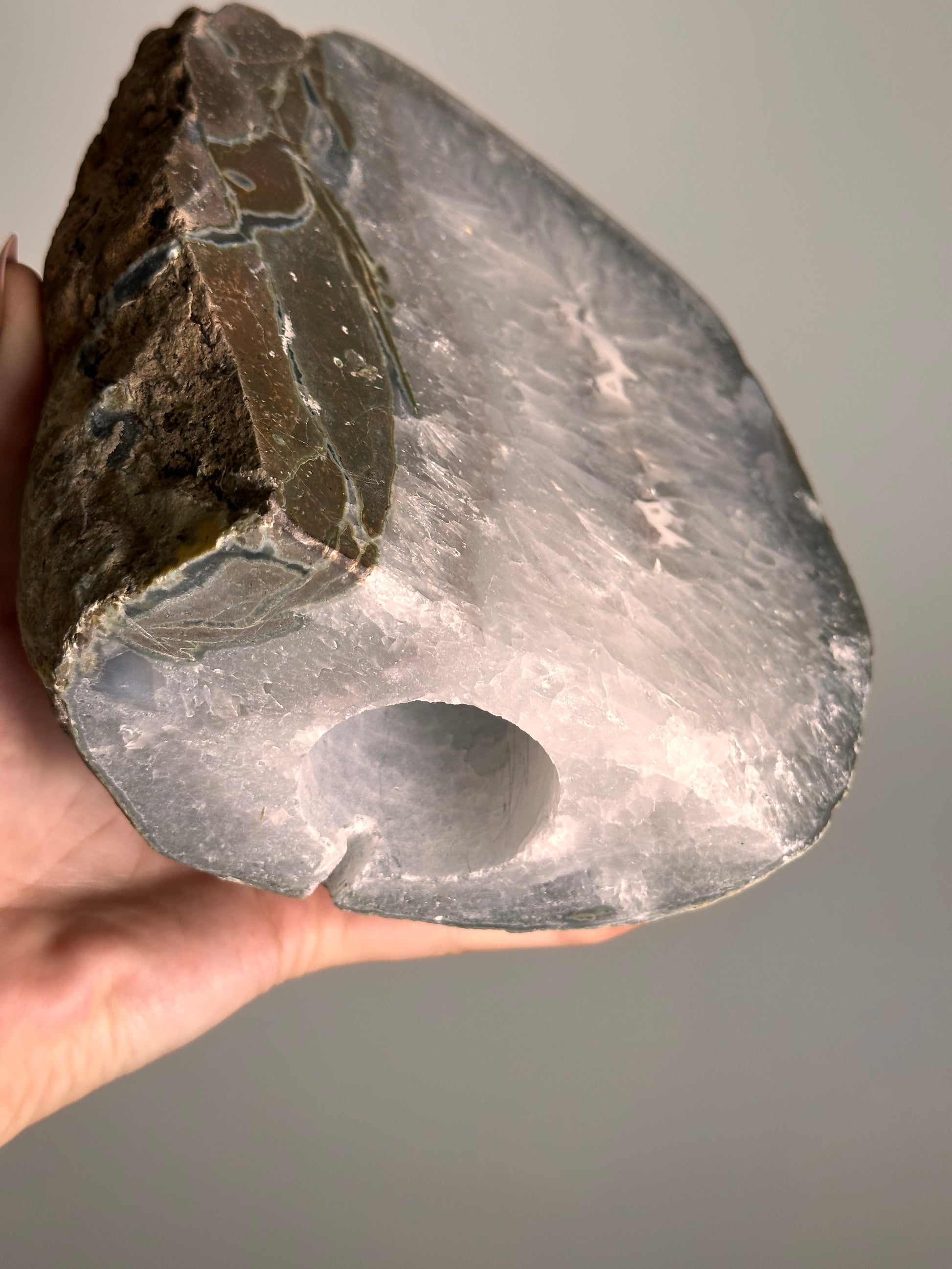 Een prachtig stukje natuur dat warmte en rust uitstraalt. Deze Agaat Lamp is gemaakt van een groot stuk natuurlijke Agaat, met een gepolijste voorkant die haar kleuren en patronen laat oplichten wanneer het lampje brandt. ✨