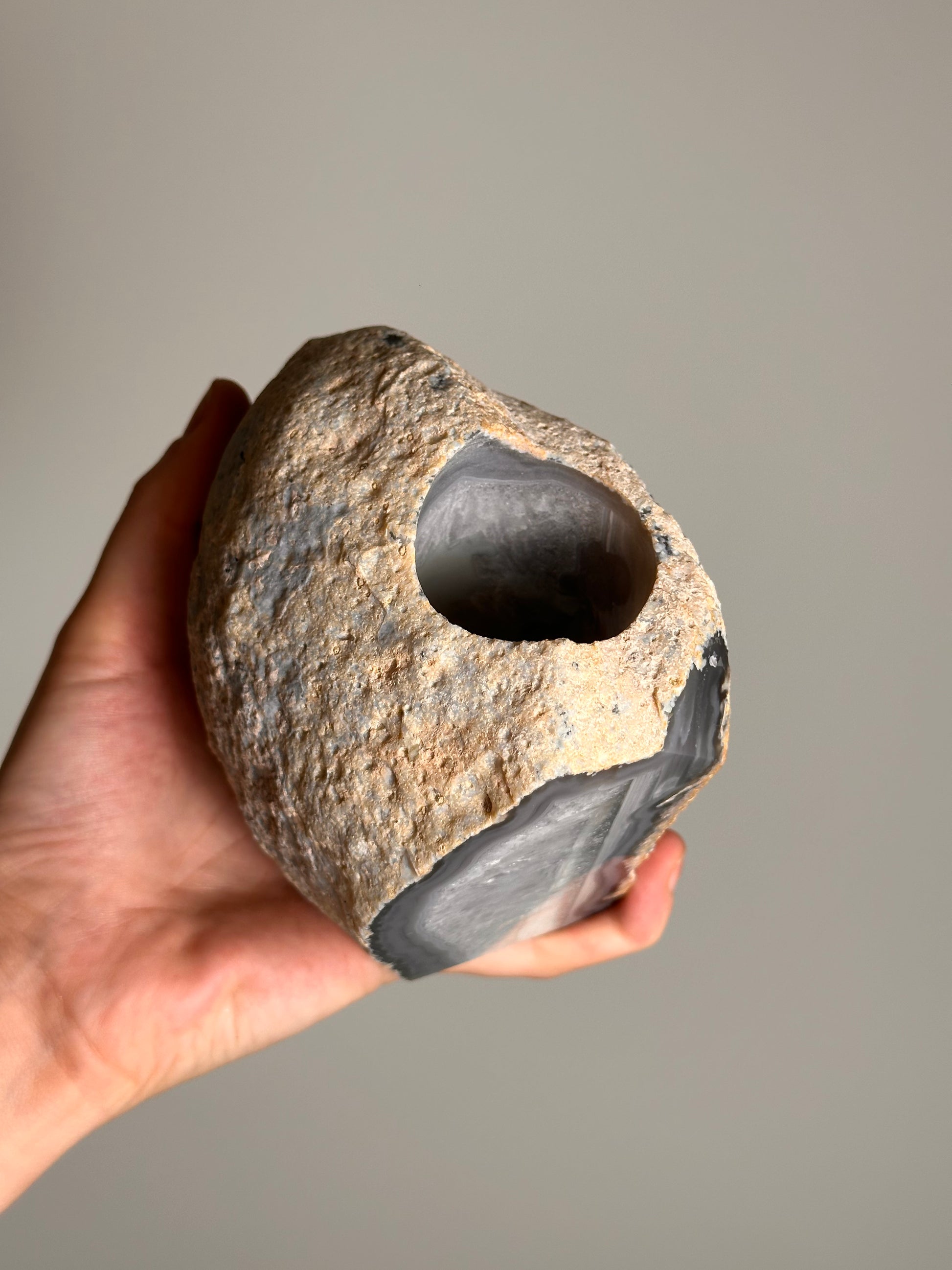 Prachtige manier om Edelstenen in huis te halen. Edelstenen komen namelijk het mooiste uit voor een raam, kaars of lamp. Het licht van het waxinelichtje zal prachtig door de Agaat heen glinsteren.