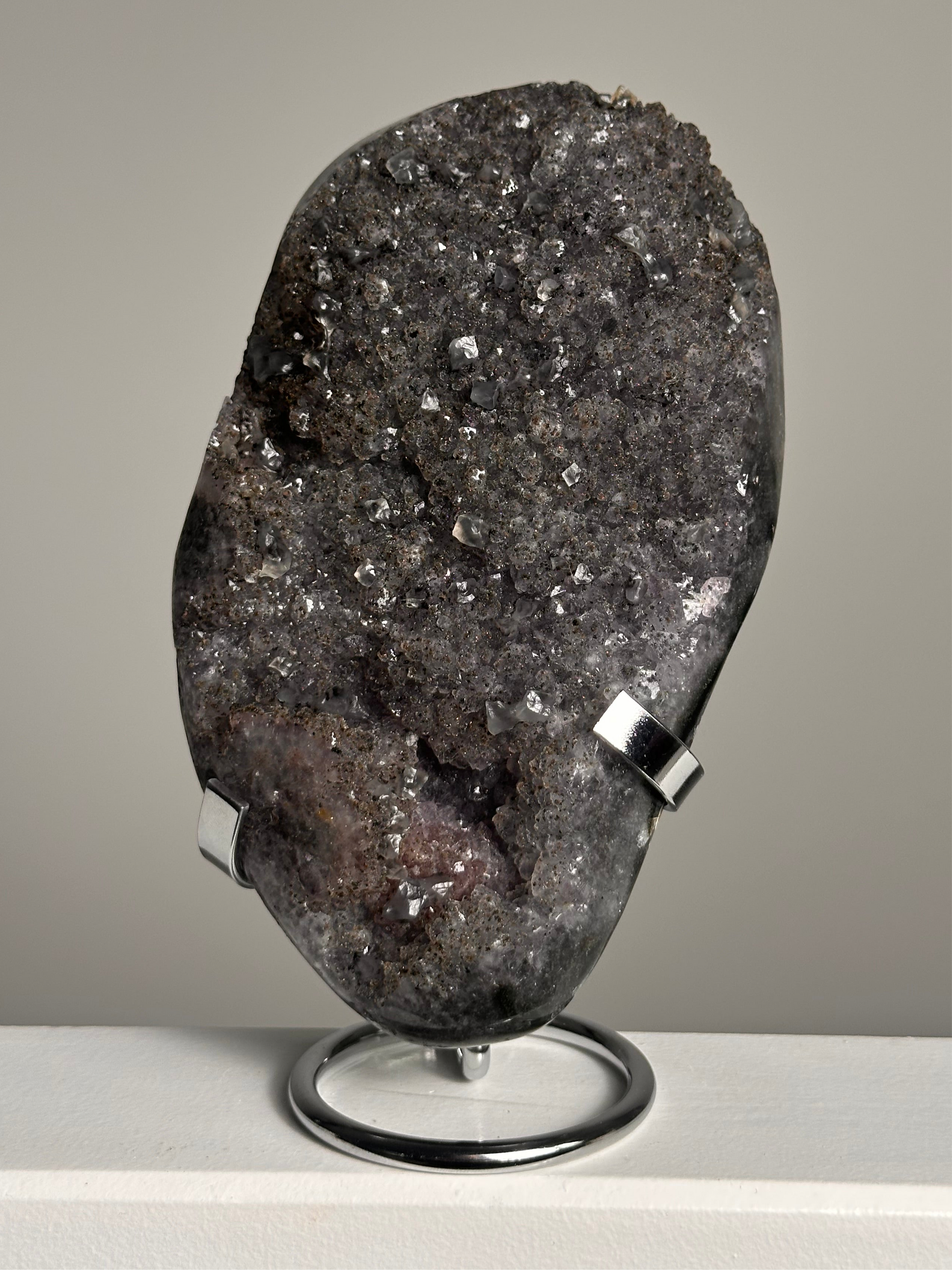 Een Amethist op standaard is een prachtige manier om de kracht van moeder natuur in huis te halen. Door haar diepe paarse kleur en ruwe kristalstructuur valt ze meteen op. Of je haar nu op een plank, dressoir of bij een raam zet. Dankzij de stevige standaard is ze stabiel en vanuit elke hoek goed zichtbaar. In het licht komt haar glans extra mooi tot haar recht.