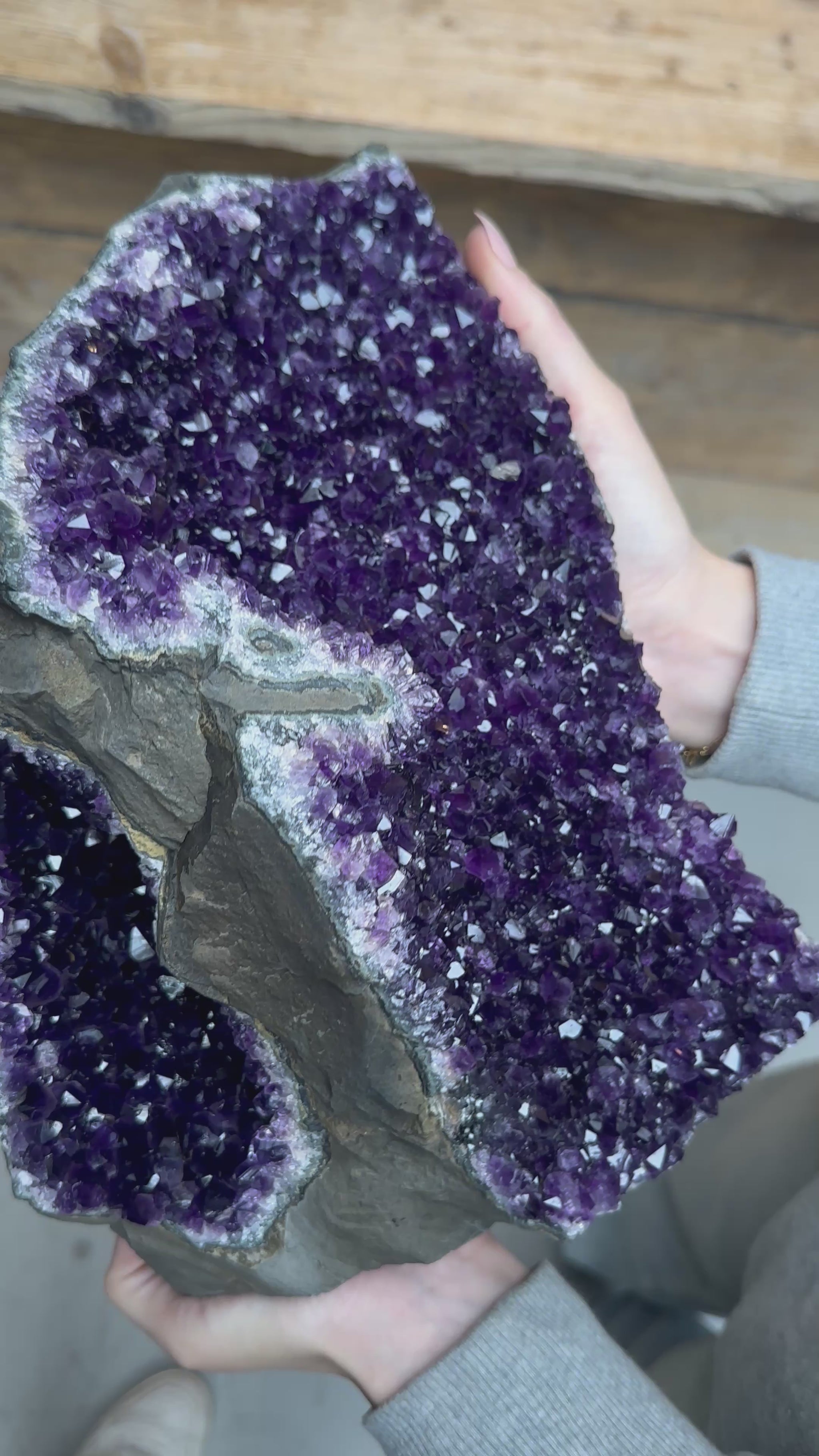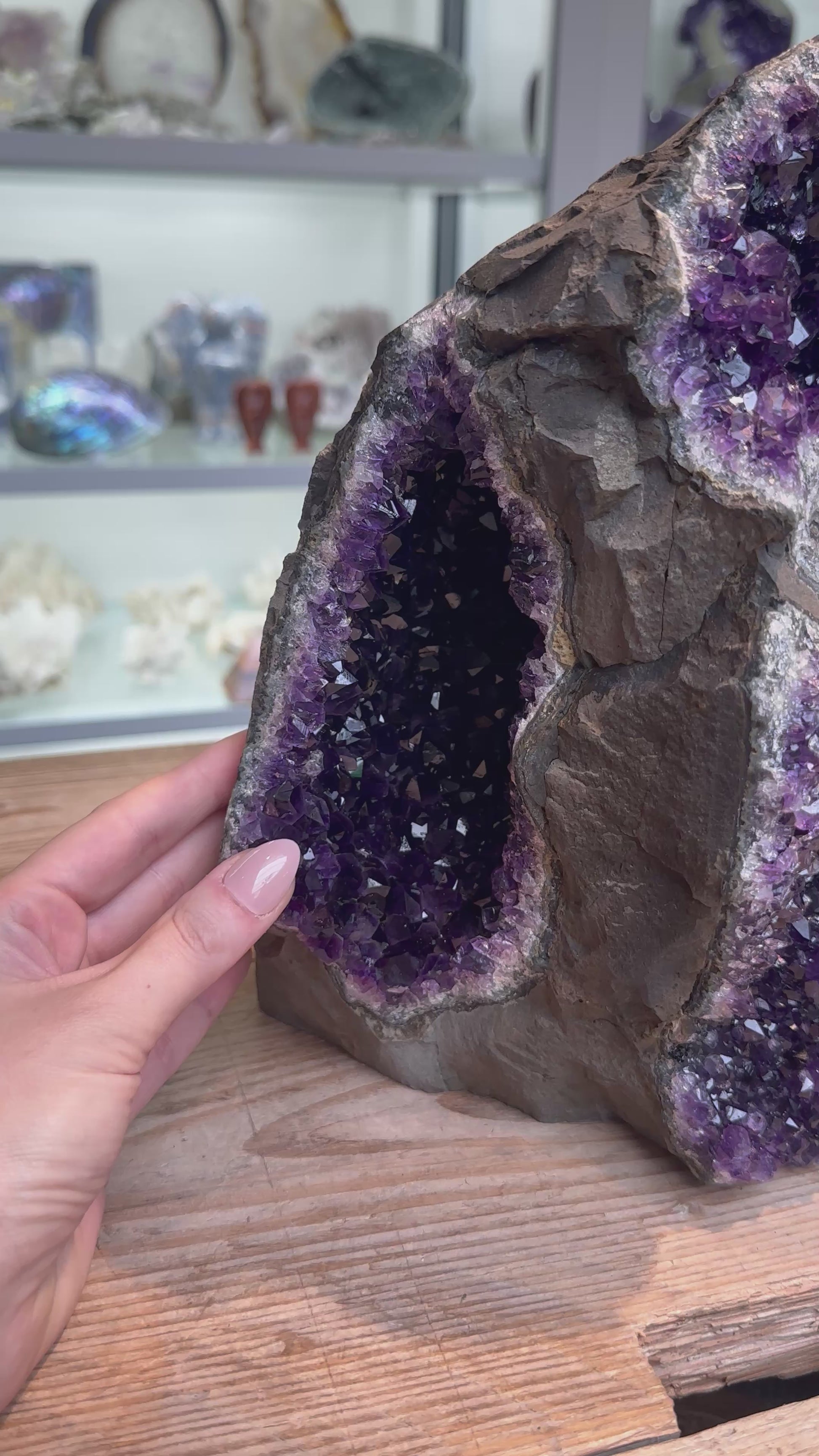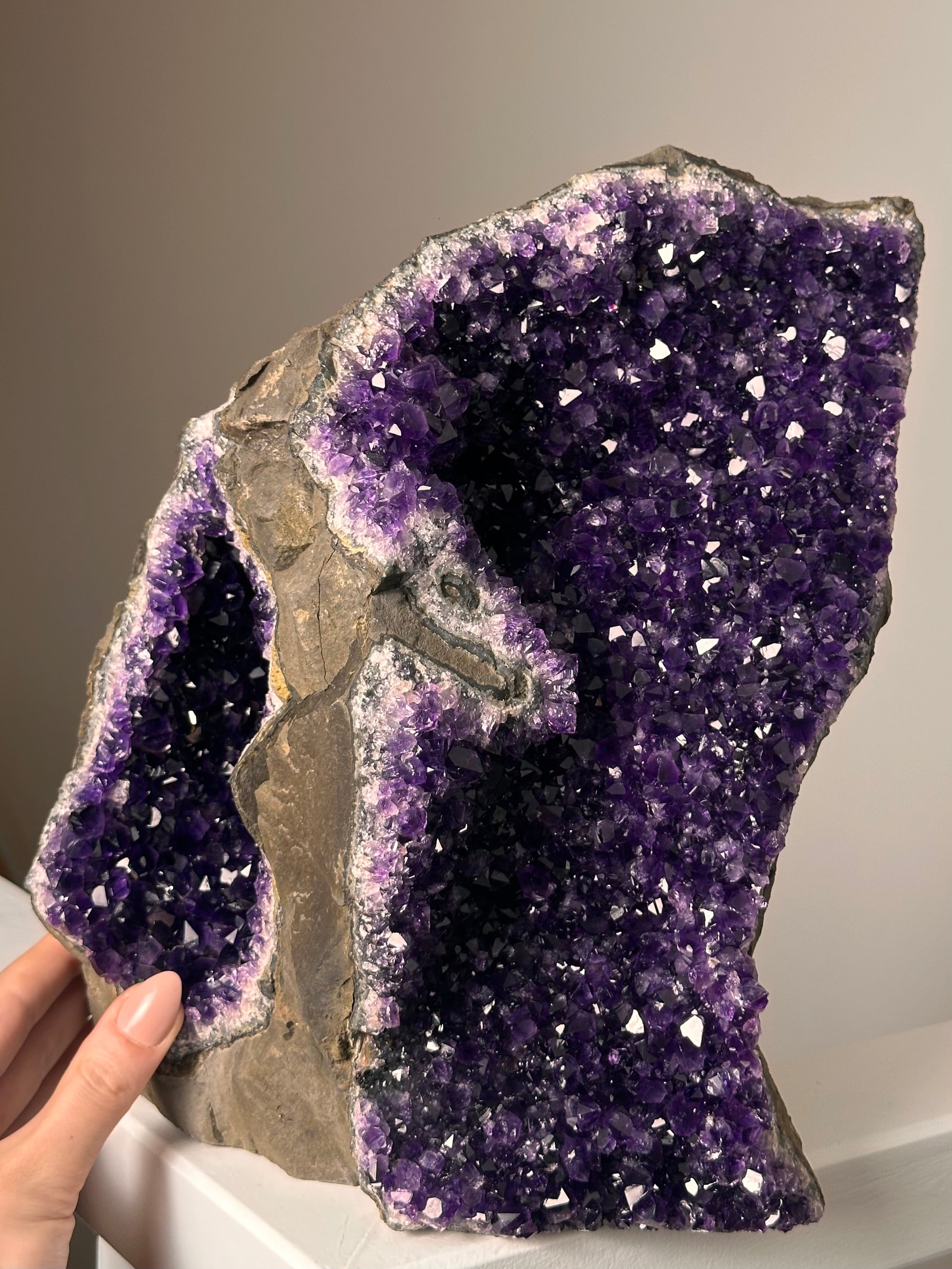 Door de glad gezaagde onderzijde kan deze prachtige Amethist zelfstandig staan, en kun je hem mooi neerzetten in de ruimte.