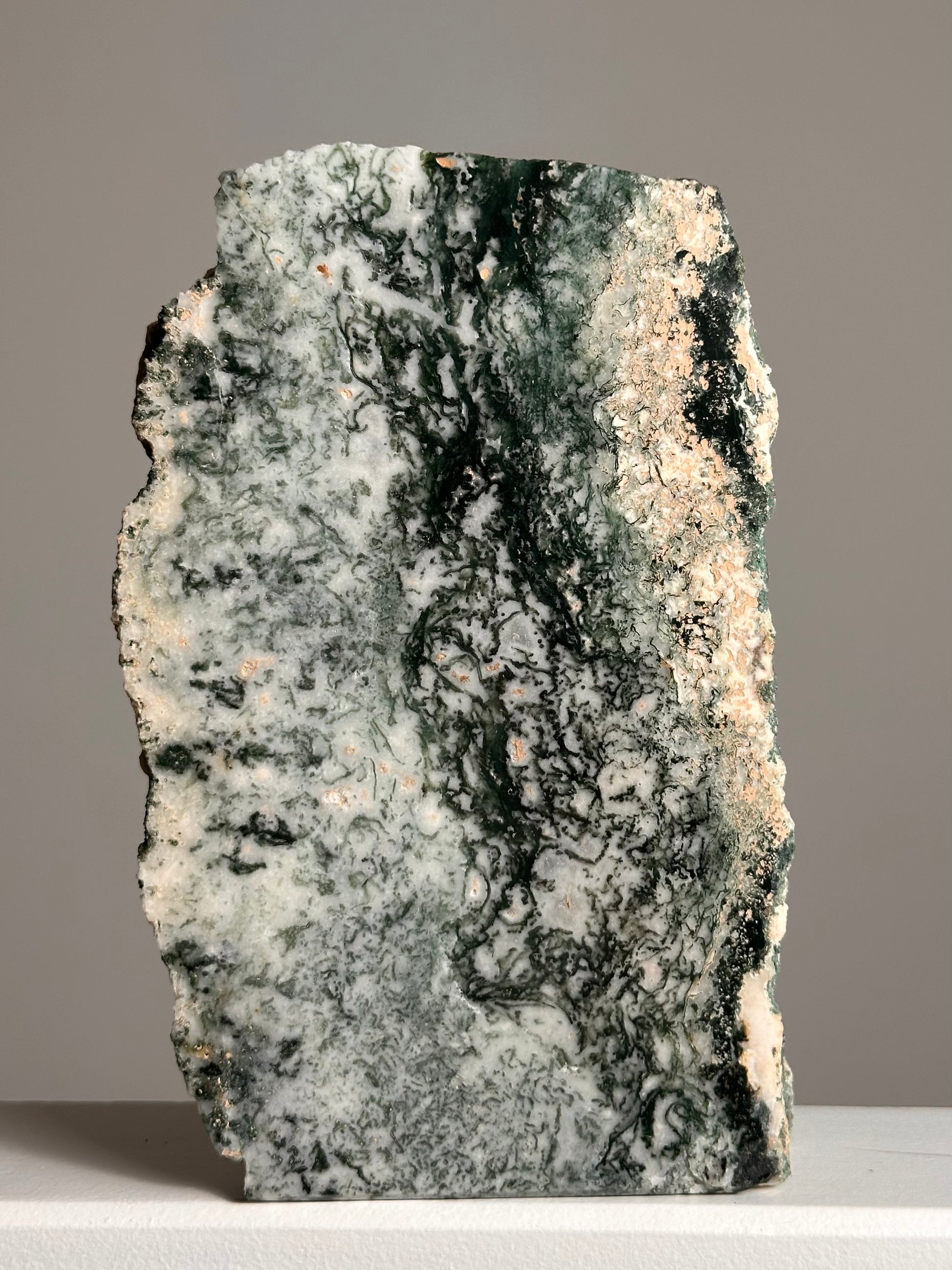 Een Boomagaat standvlak is een prachtig stukje natuur. Door haar platte onderzijde staat ze stevig en door haar gepolijste voorkant zie je de prachtige lijnen. Zet haar bij een raam of onder een zachte lamp en ontdek telkens nieuwe kleuren die dansen in het licht.