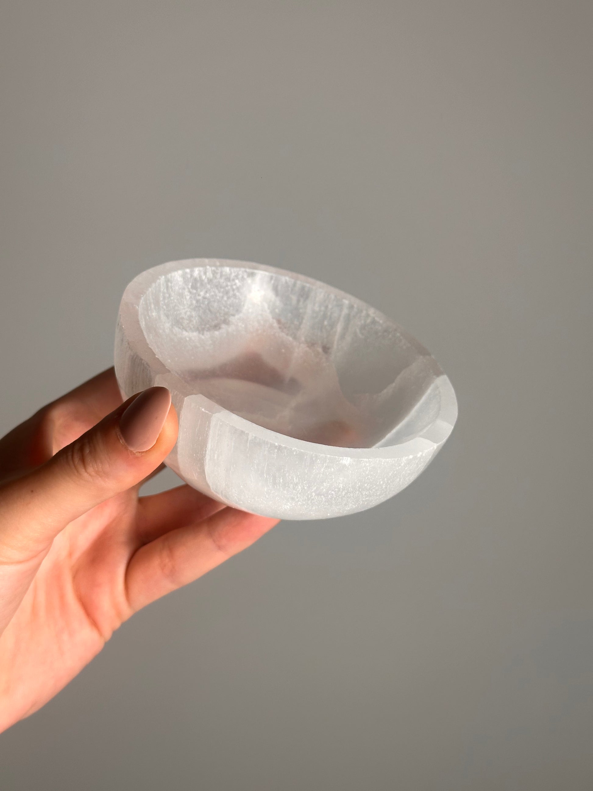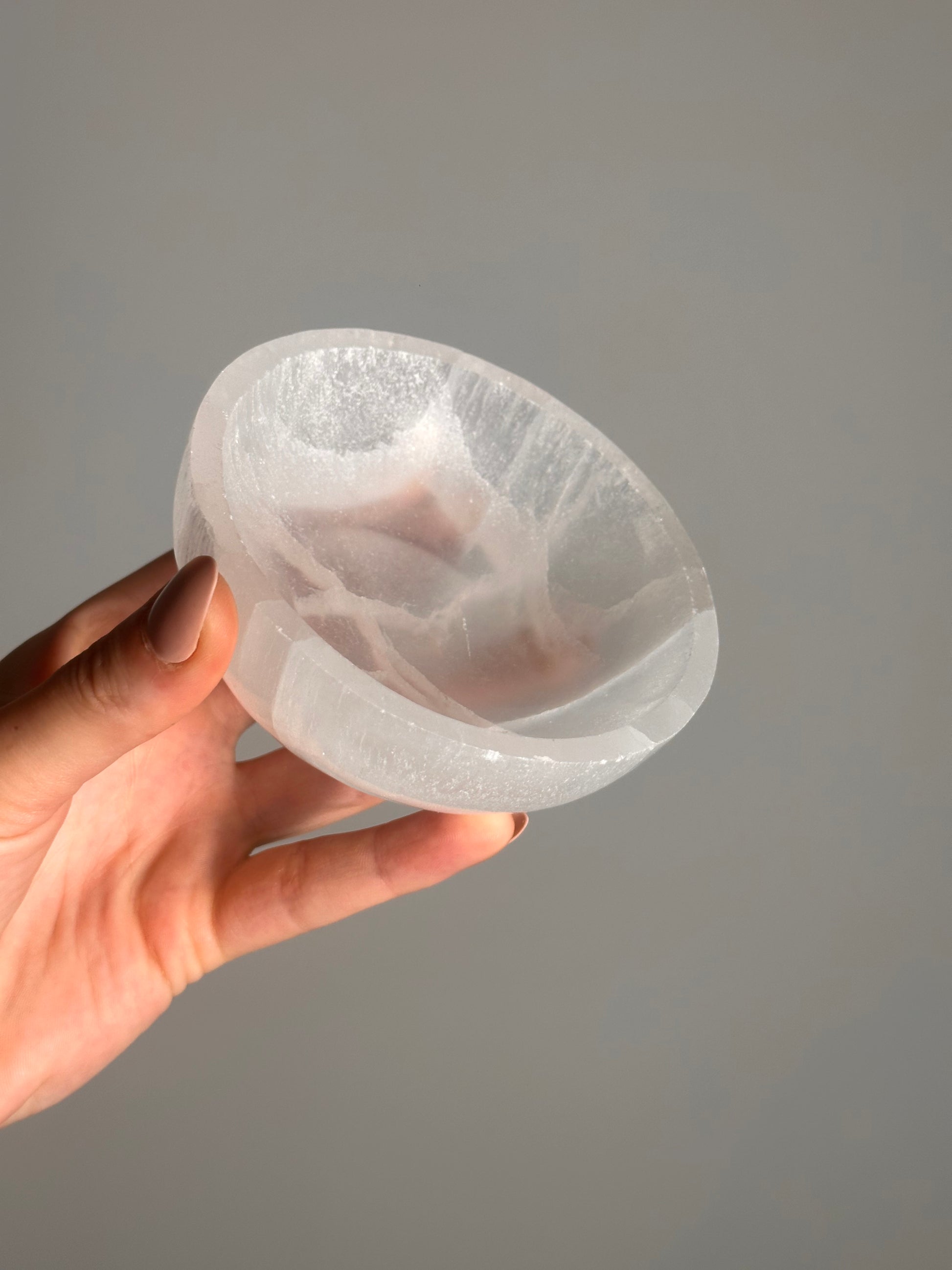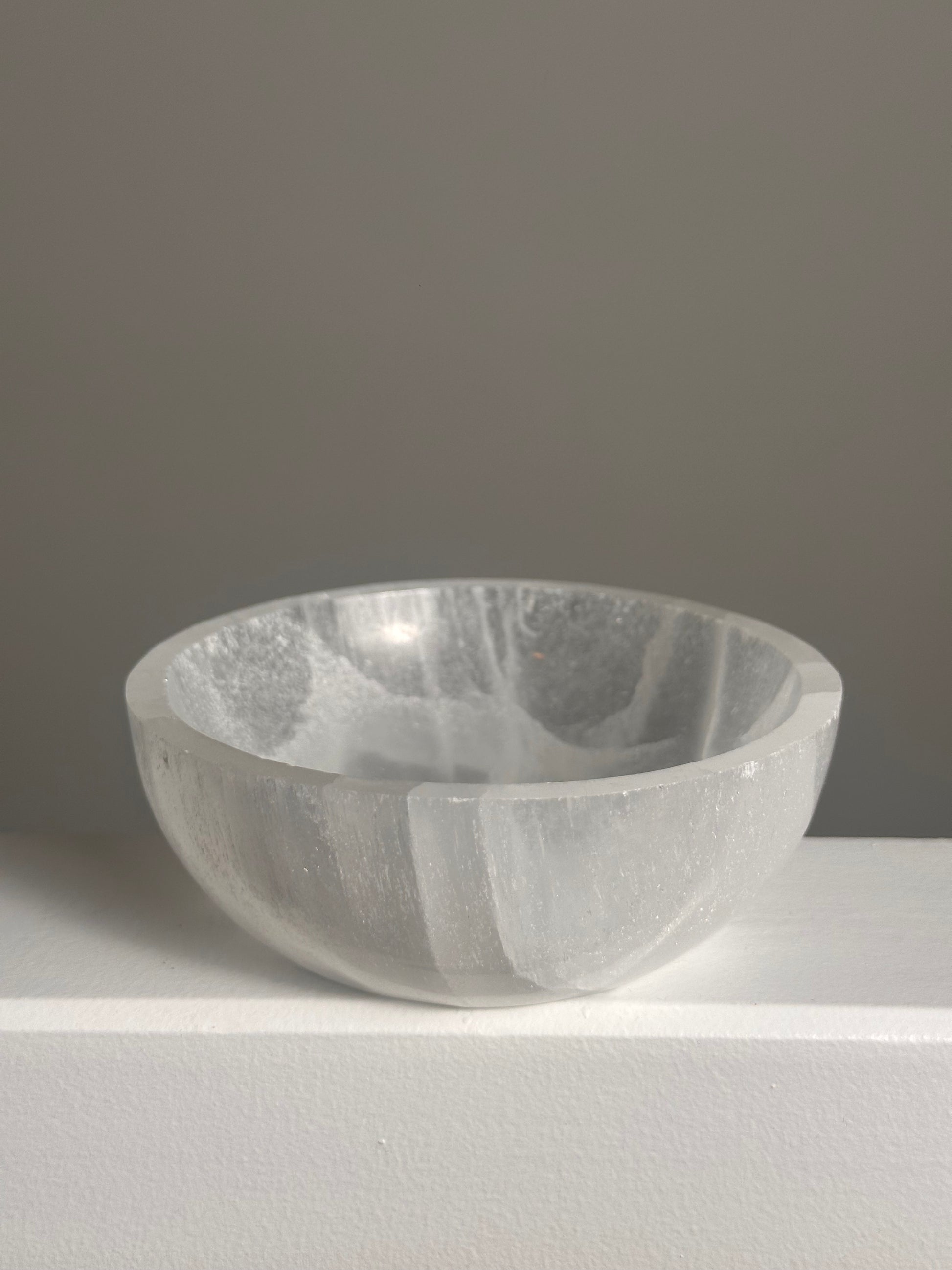 Dit Seleniet schaaltje is volledig handgemaakt en gepolijst. Het subtiele en doorschijnende wit van de seleniet maakt het schaaltje perfect als decoratie, voor je sieraden of kristallen.