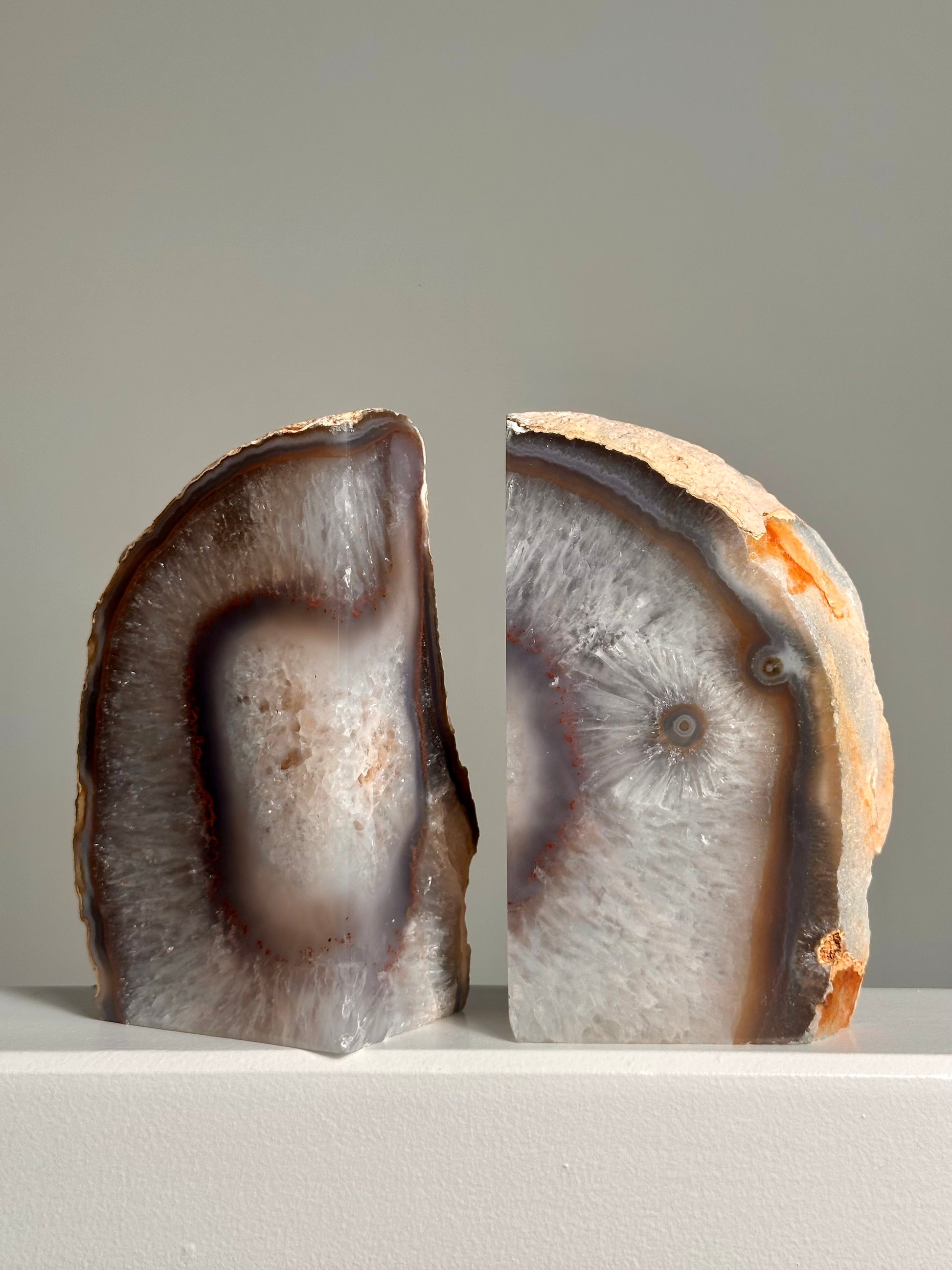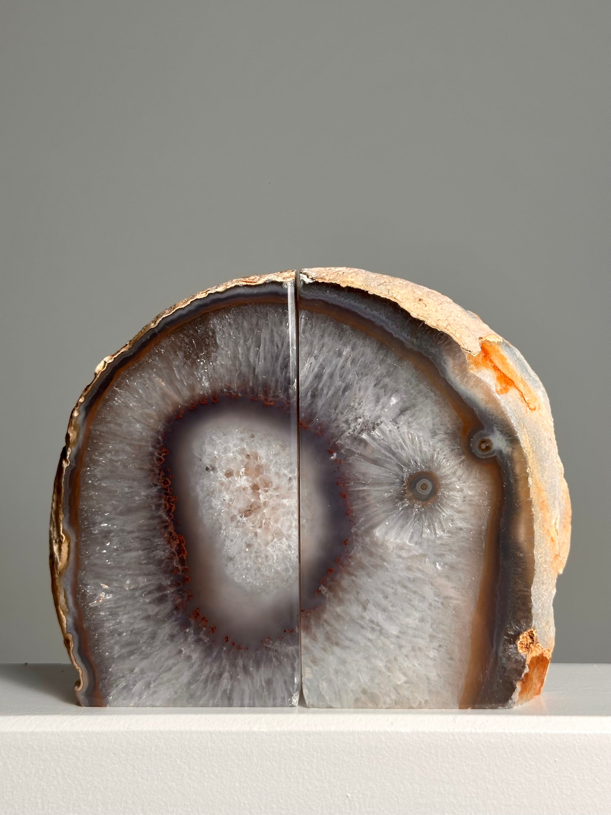 Het originele stuk is doormidden gesplitst, waardoor je twee helften krijgt die samen een set vormen. Je kunt ze op verschillende manieren neerzetten, perfect om jouw favoriete boeken, tijdschriften of kristallencollectie mooi te presenteren. 📚💫