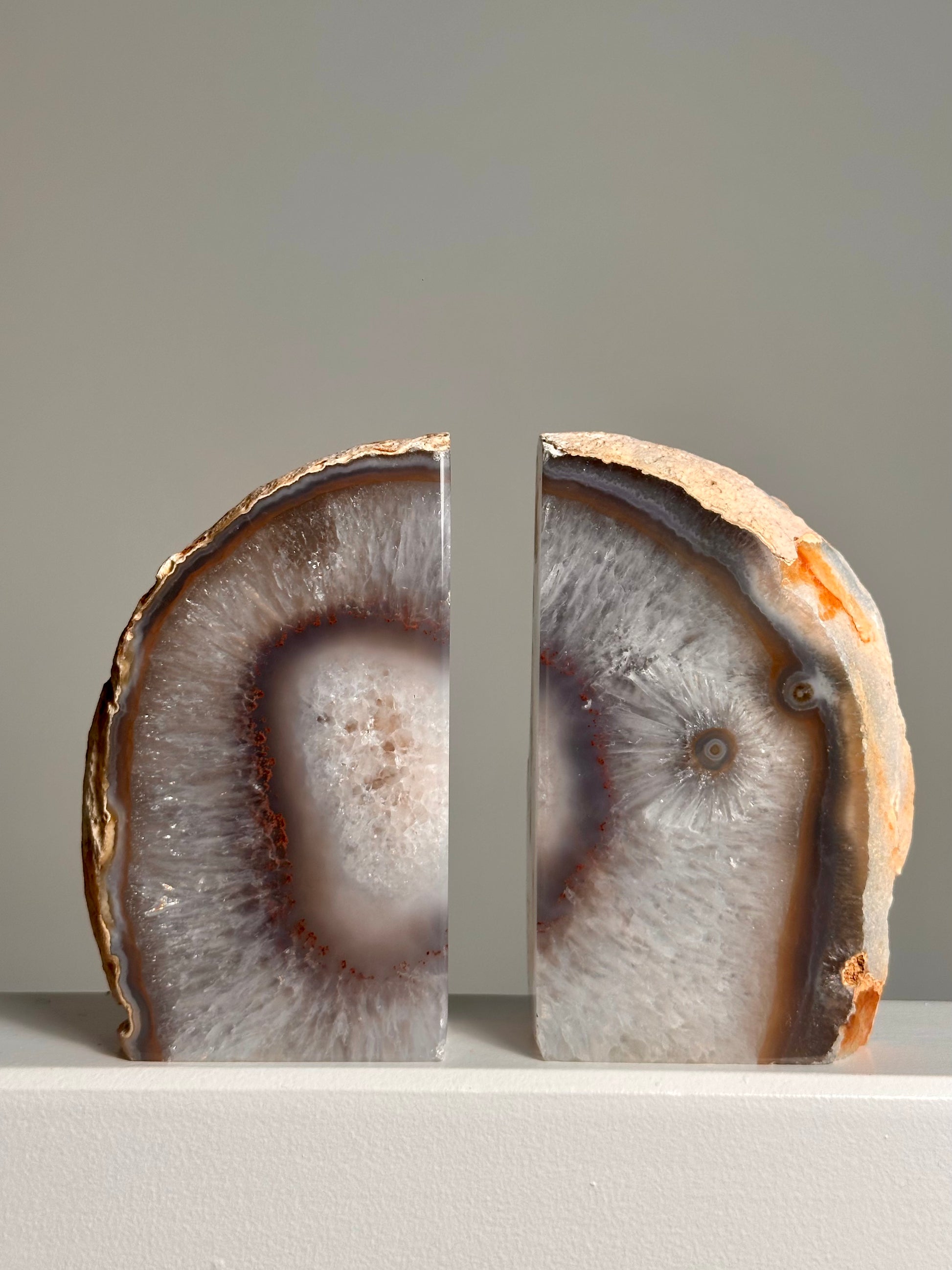 Deze prachtige boekensteun is gemaakt van echte Agaat, een steen die bekendstaat om haar natuurlijke schoonheid en kalmerende energie. Elk stuk is uniek, een klein kunstwerk van de aarde zelf. ✨
