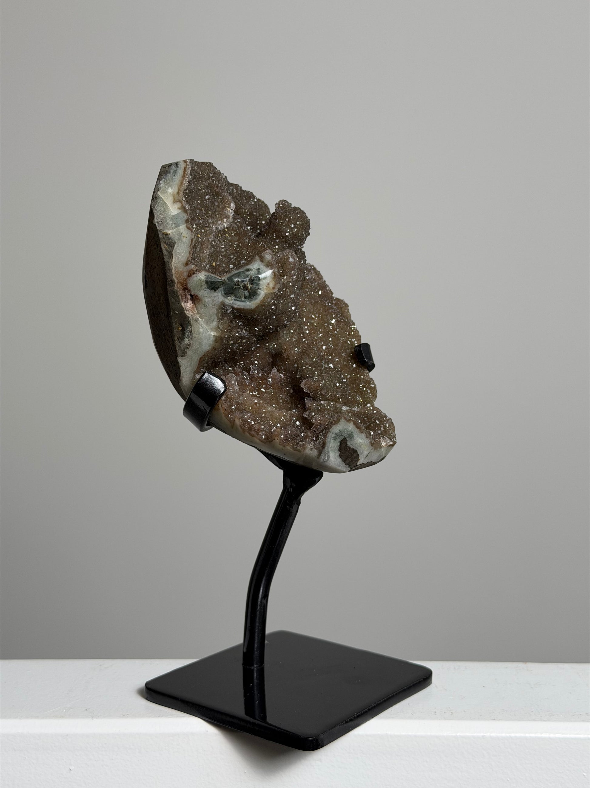 Een Amethist op standaard is een prachtige manier om de kracht van moeder natuur in huis te halen. Door haar beige kleur en ruwe kristalstructuur valt ze meteen op. Of je haar nu op een plank, dressoir of bij een raam zet. Dankzij de stevige standaard is ze stabiel en vanuit elke hoek goed zichtbaar. In het licht komt haar glans extra mooi tot haar recht.
