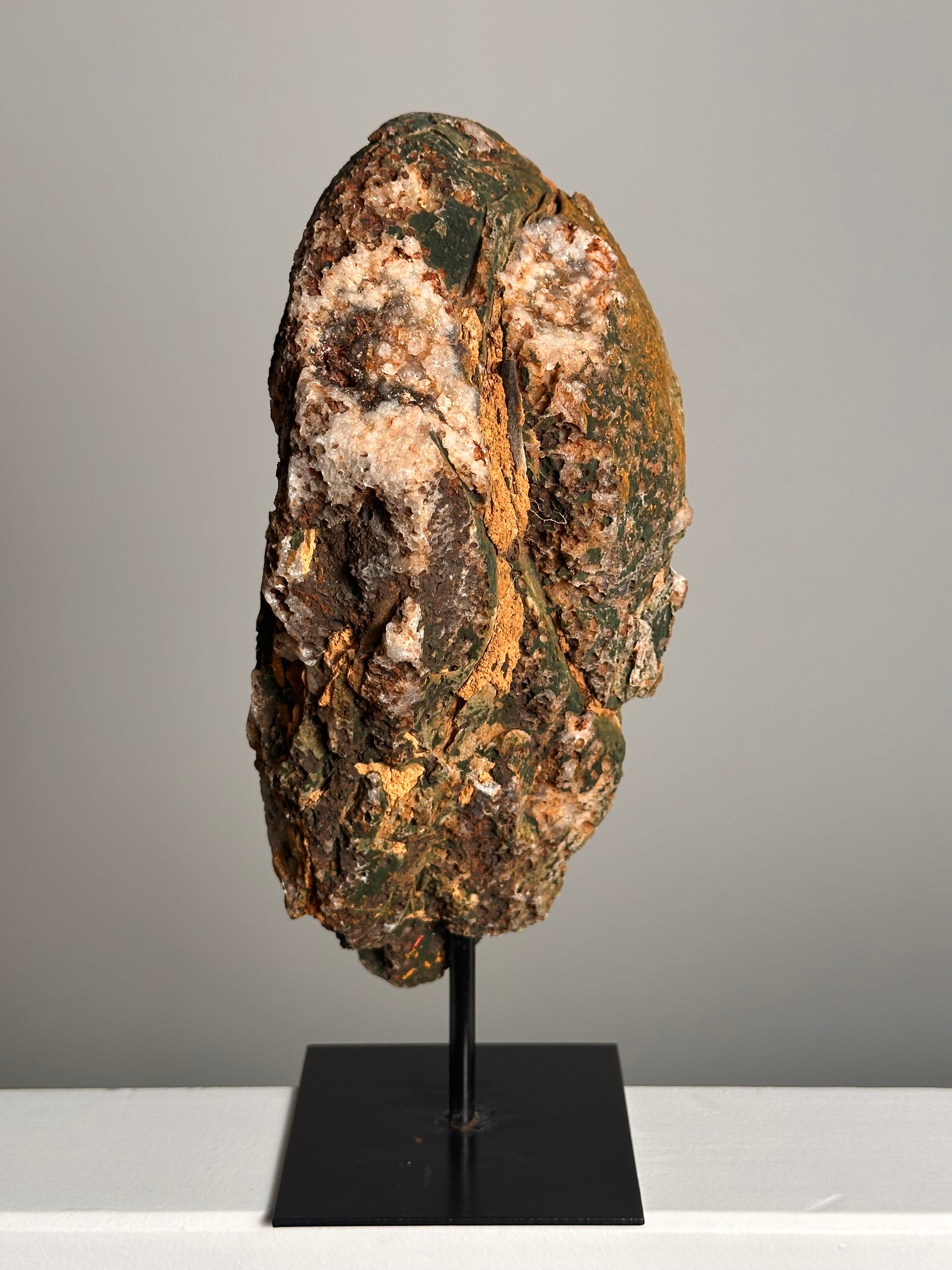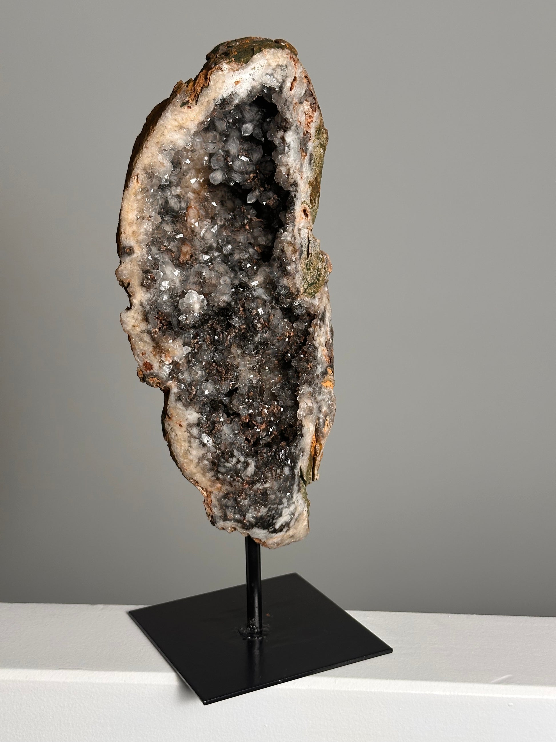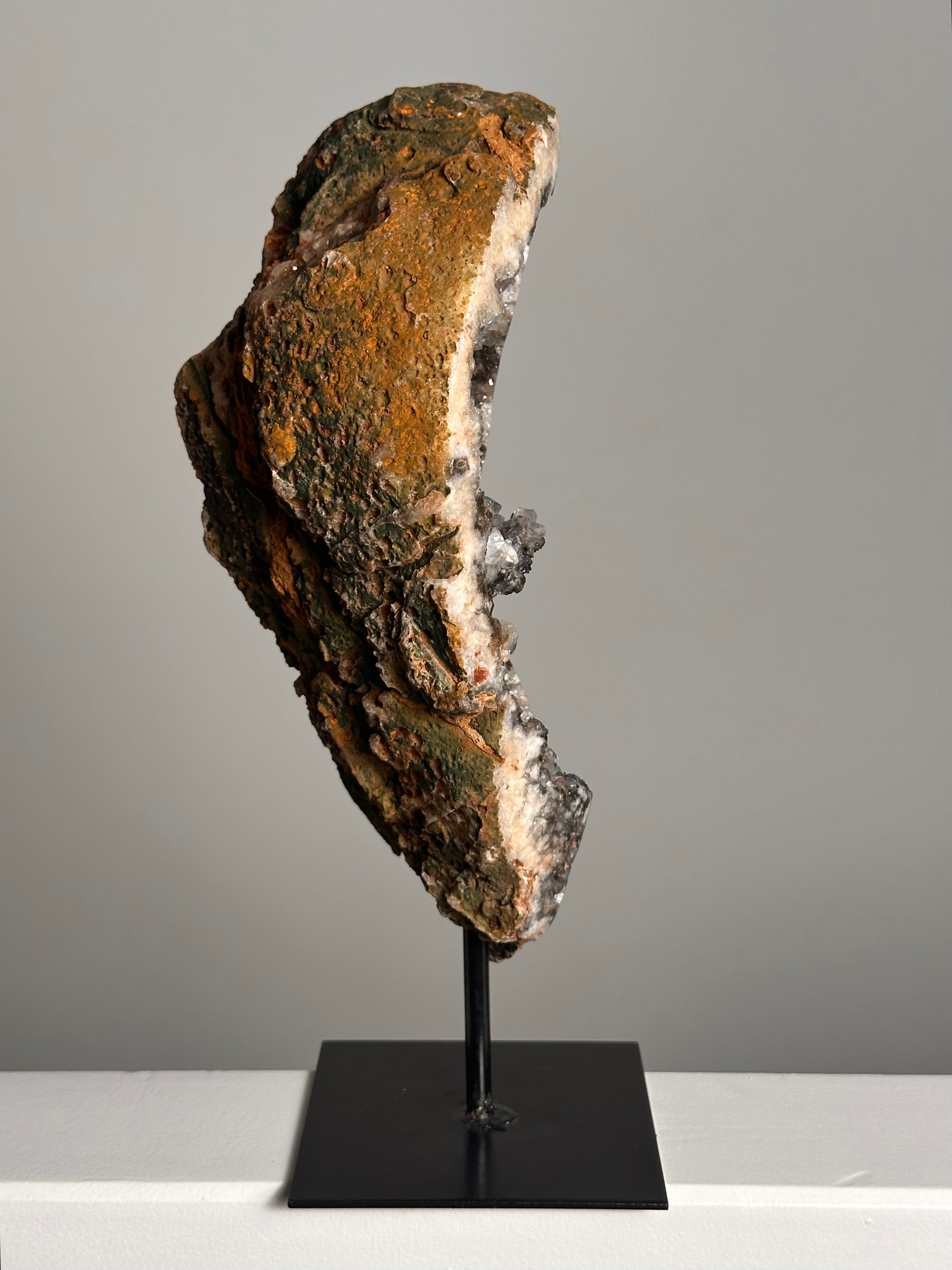 Een agaat op standaard is meer dan een decoratiestuk, het is een stukje kunst. De stevige metalen voet zorgt ervoor dat je haar op elke plek kunt neerzetten. Plaats haar bij een raam of onder een zachte lamp en laat het licht haar natuurlijke patronen tot leven brengen.