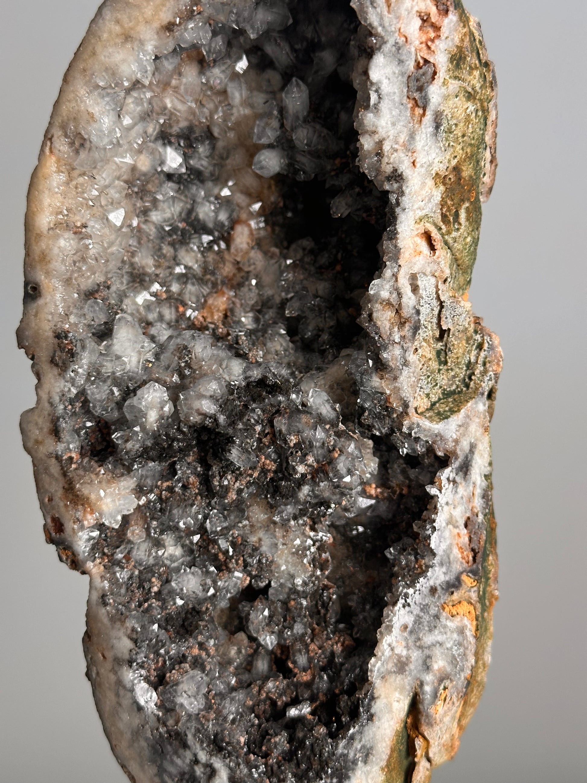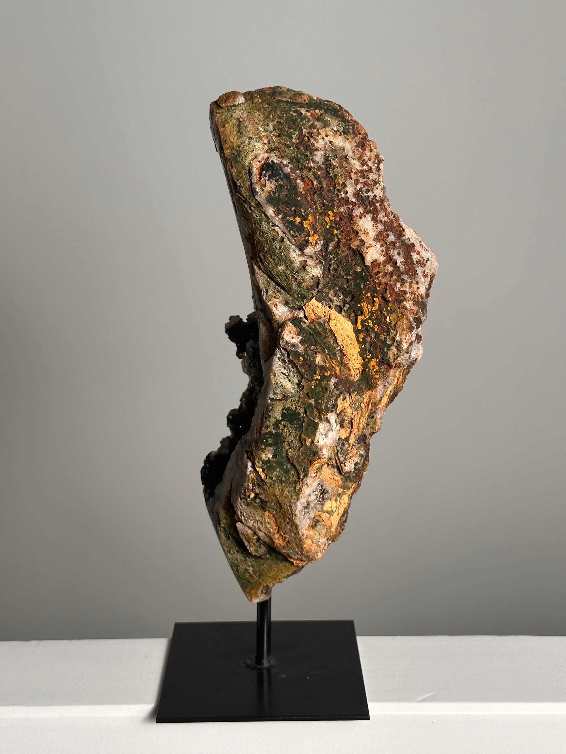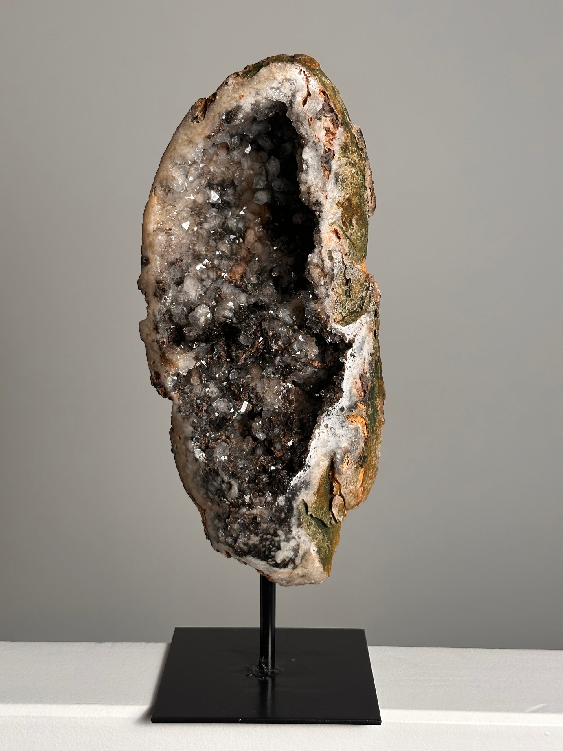 Een agaat op standaard is meer dan een decoratiestuk, het is een stukje kunst. De stevige metalen voet zorgt ervoor dat je haar op elke plek kunt neerzetten. Plaats haar bij een raam of onder een zachte lamp en laat het licht haar natuurlijke patronen tot leven brengen.