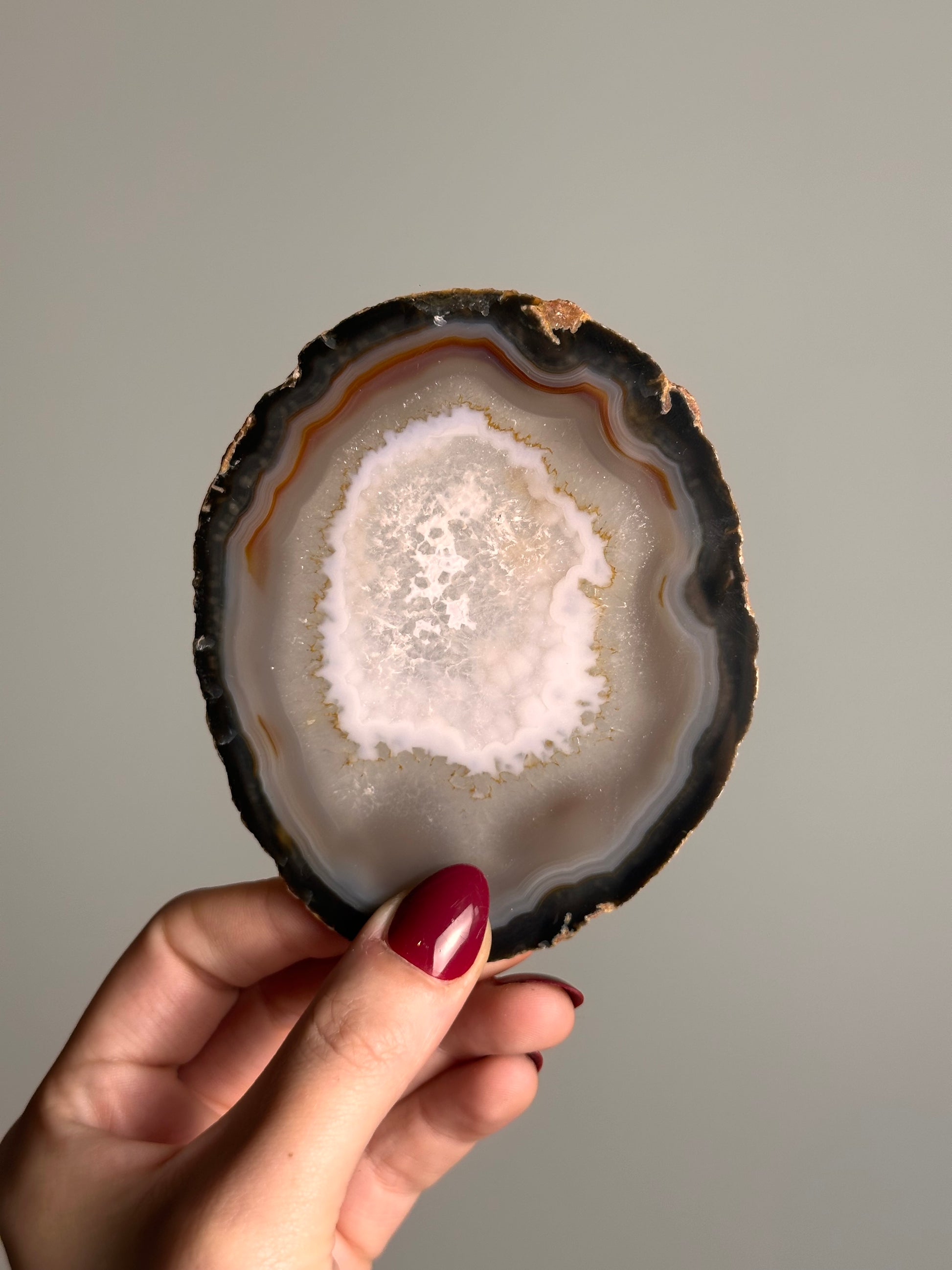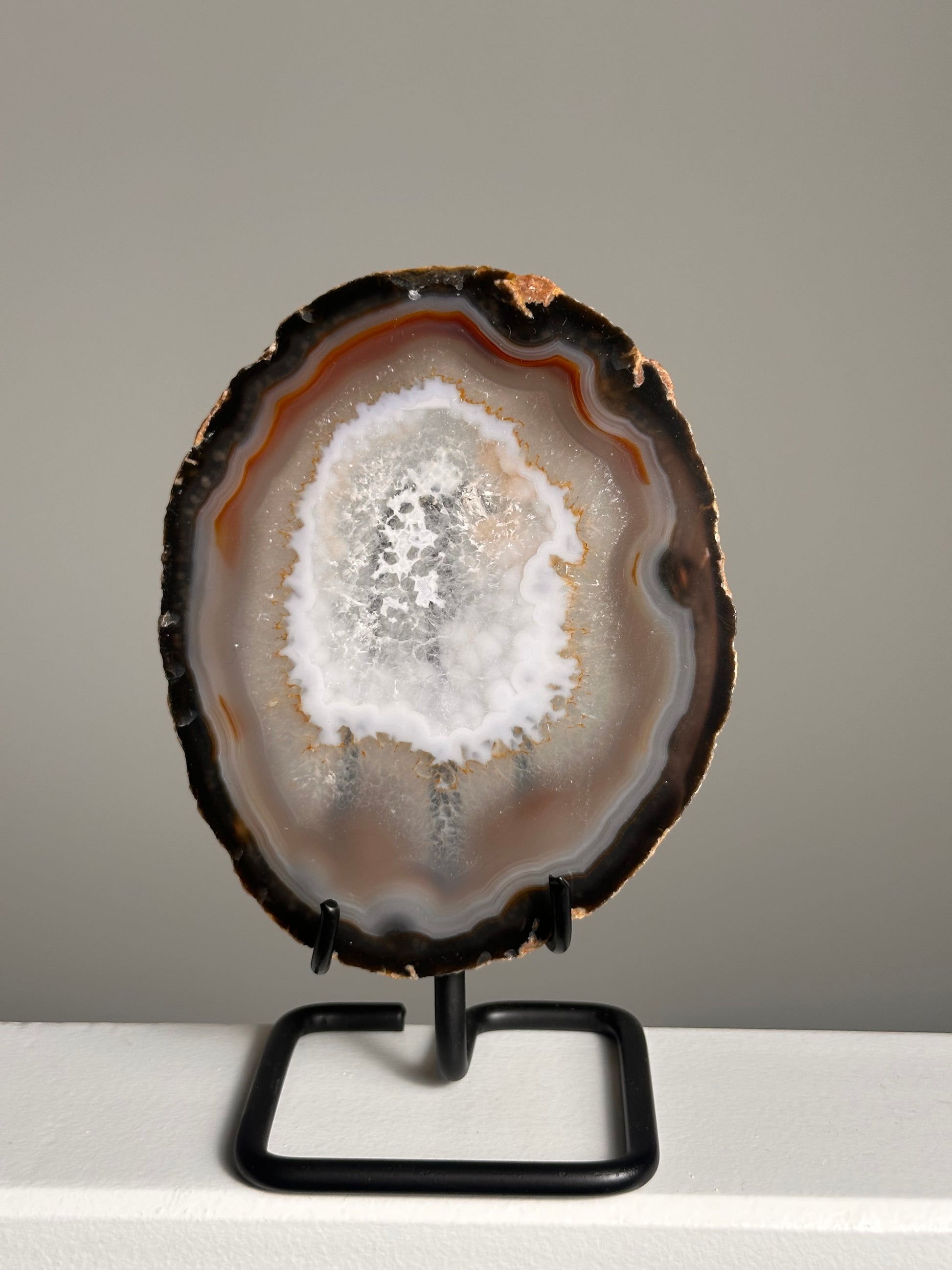 Een agaat schijf is meer dan een decoratiestuk het is een stukje kunst. Je kunt haar combineren met een standaard of een waxinelichthouder waar je de schijf in kunt plaatsen - beide zijn los verkrijgbaar.