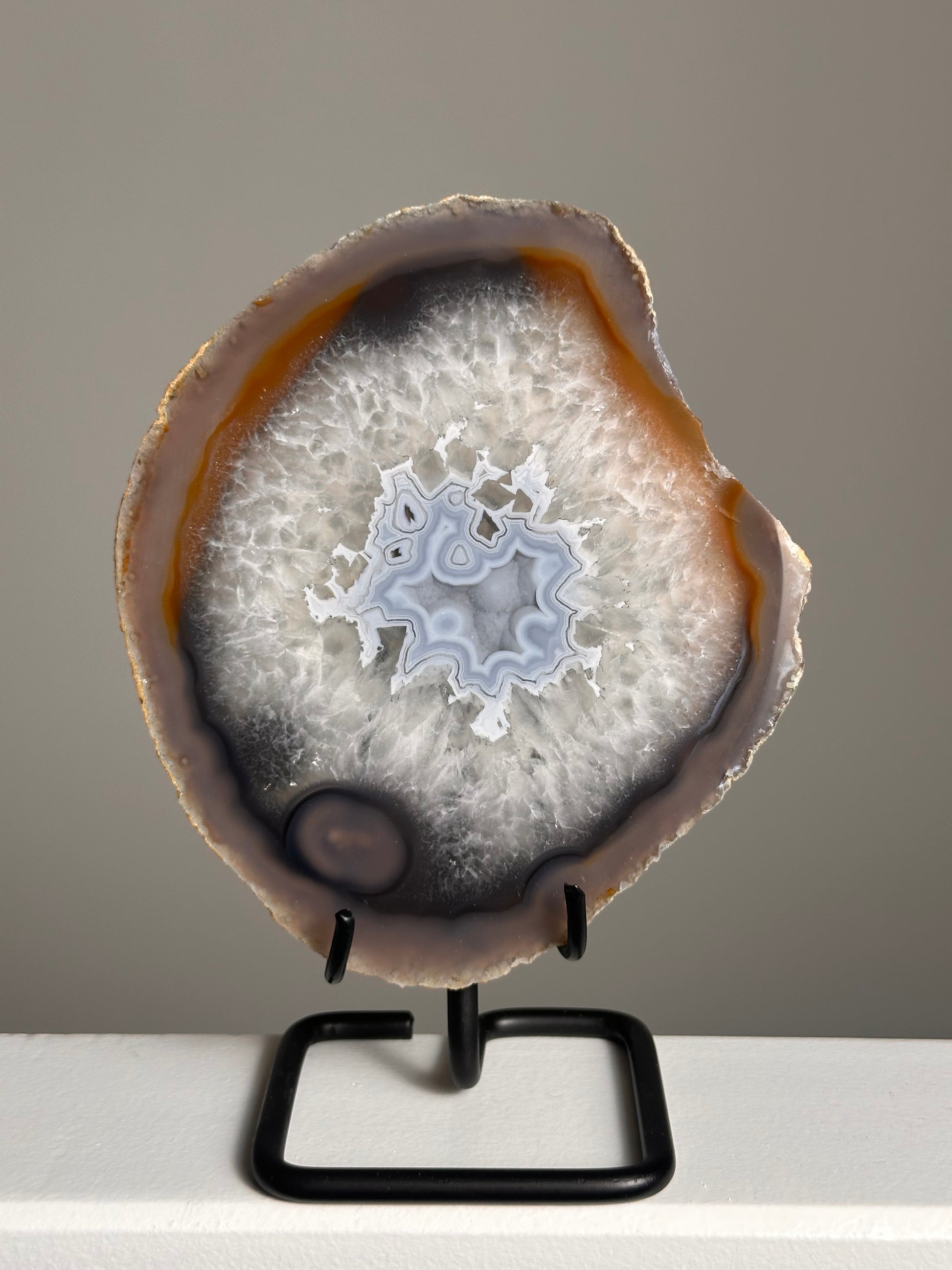 Een agaat schijf is meer dan een decoratiestuk het is een stukje kunst. Je kunt haar combineren met een standaard of een waxinelichthouder waar je de schijf in kunt plaatsen - beide zijn los verkrijgbaar.
