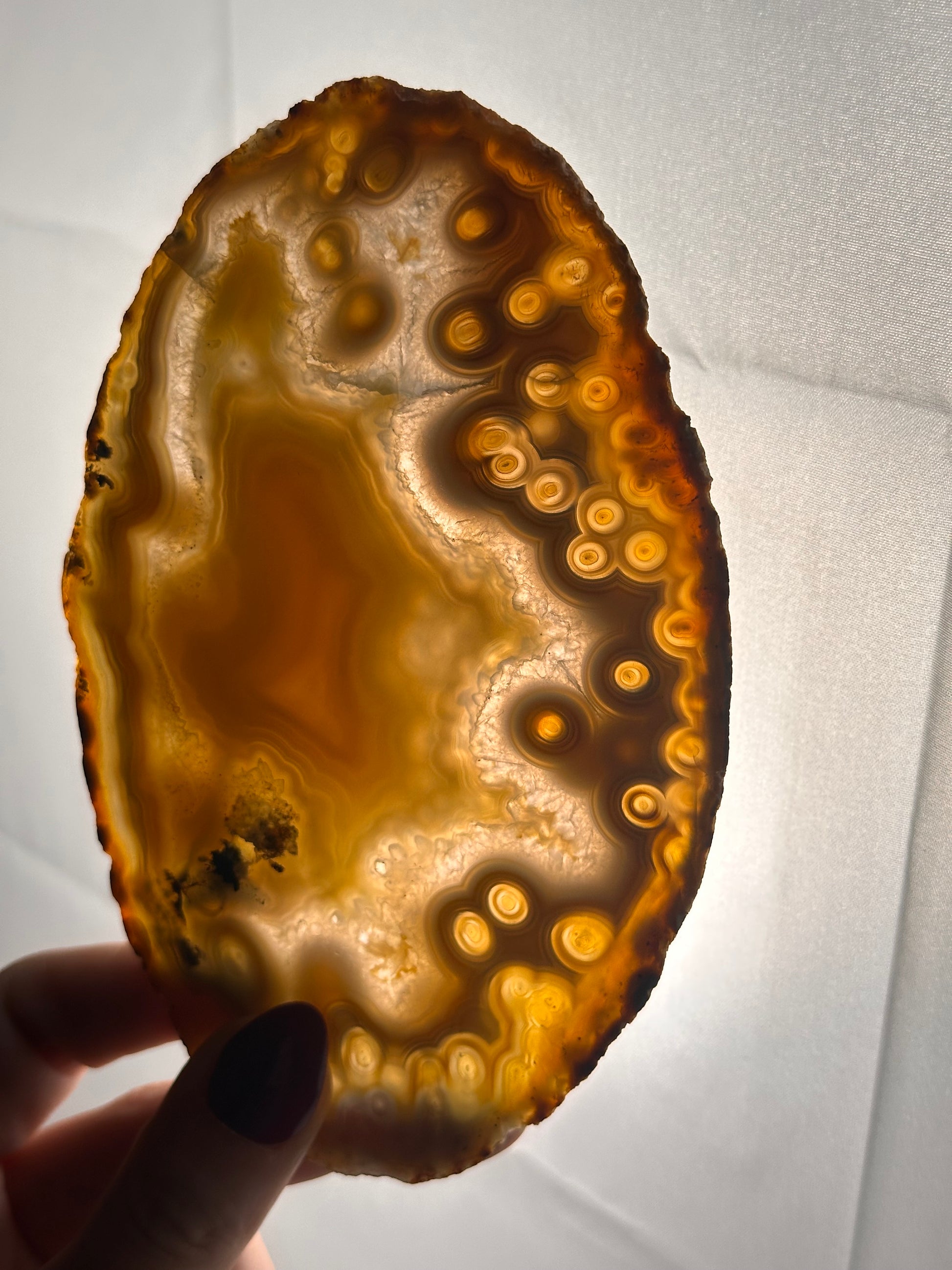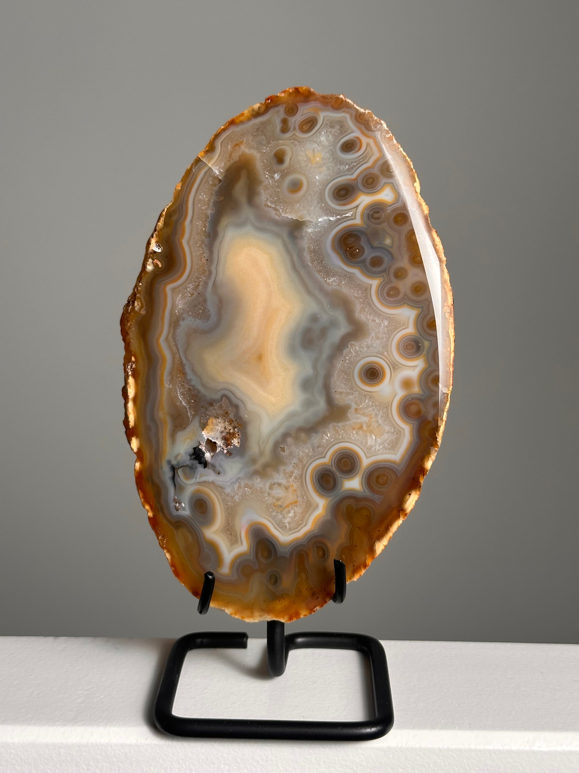 Een agaat schijf is meer dan een decoratiestuk het is een stukje kunst. Je kunt haar combineren met een standaard of een waxinelichthouder waar je de schijf in kunt plaatsen - beide zijn los verkrijgbaar.