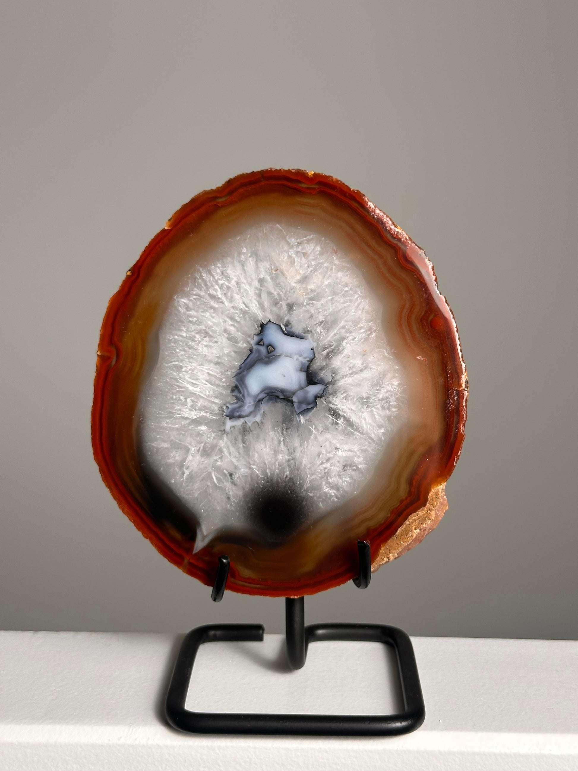 Een agaat schijf is meer dan een decoratiestuk het is een stukje kunst. Je kunt haar combineren met een standaard of een waxinelichthouder waar je de schijf in kunt plaatsen - beide zijn los verkrijgbaar.