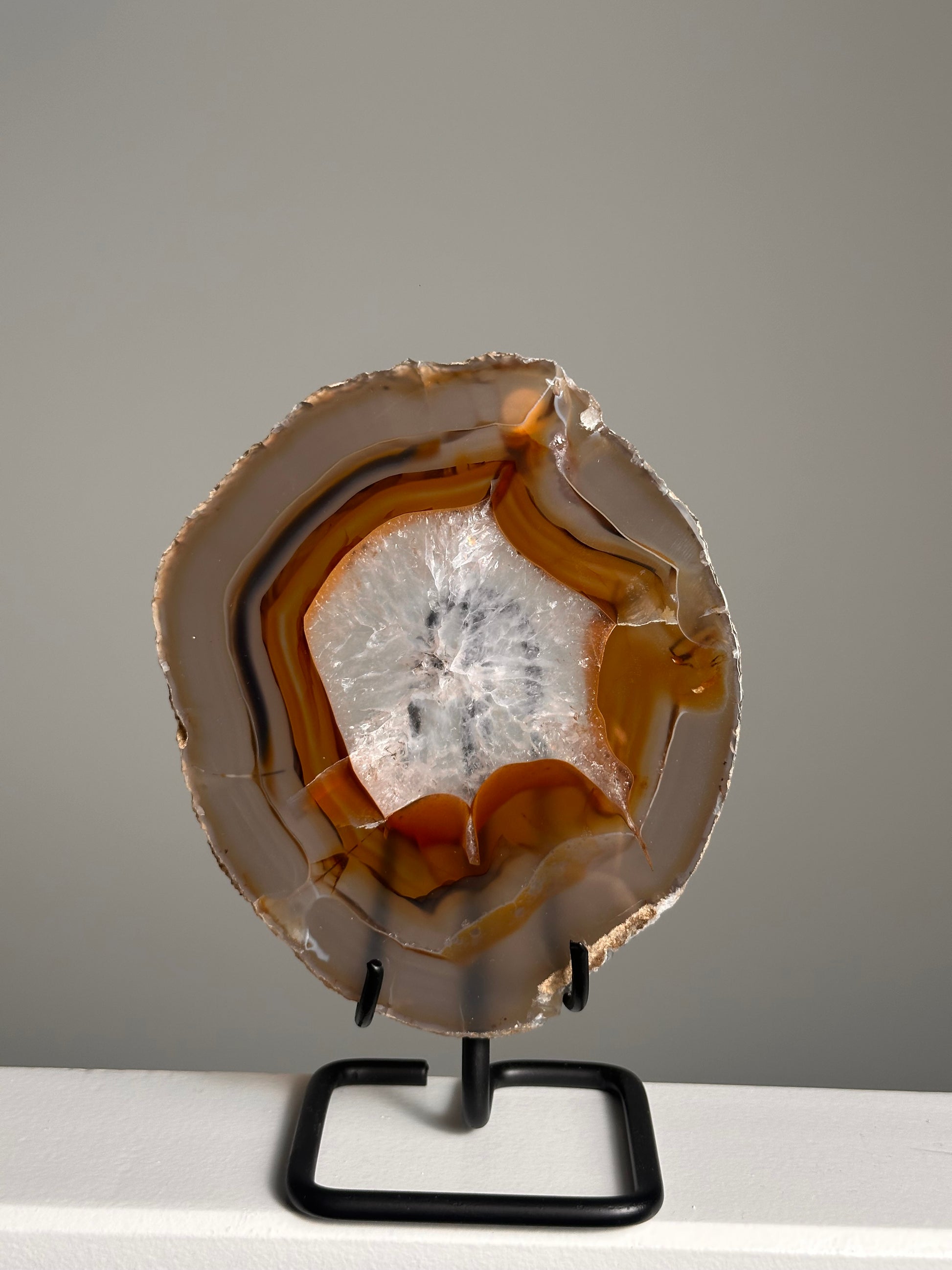 Een agaat schijf is meer dan een decoratiestuk het is een stukje kunst. Je kunt haar combineren met een standaard of een waxinelichthouder waar je de schijf in kunt plaatsen - beide zijn los verkrijgbaar.