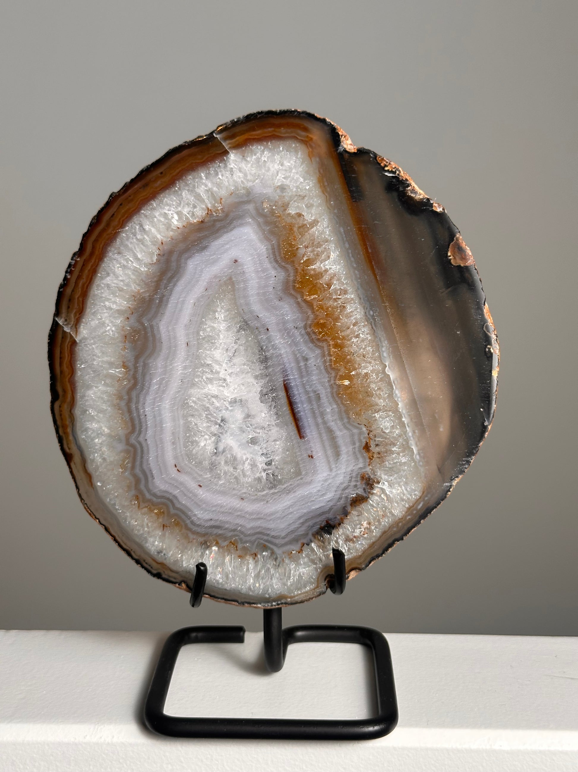 Een agaat schijf is meer dan een decoratiestuk het is een stukje kunst. Je kunt haar combineren met een standaard of een waxinelichthouder waar je de schijf in kunt plaatsen - beide zijn los verkrijgbaar.