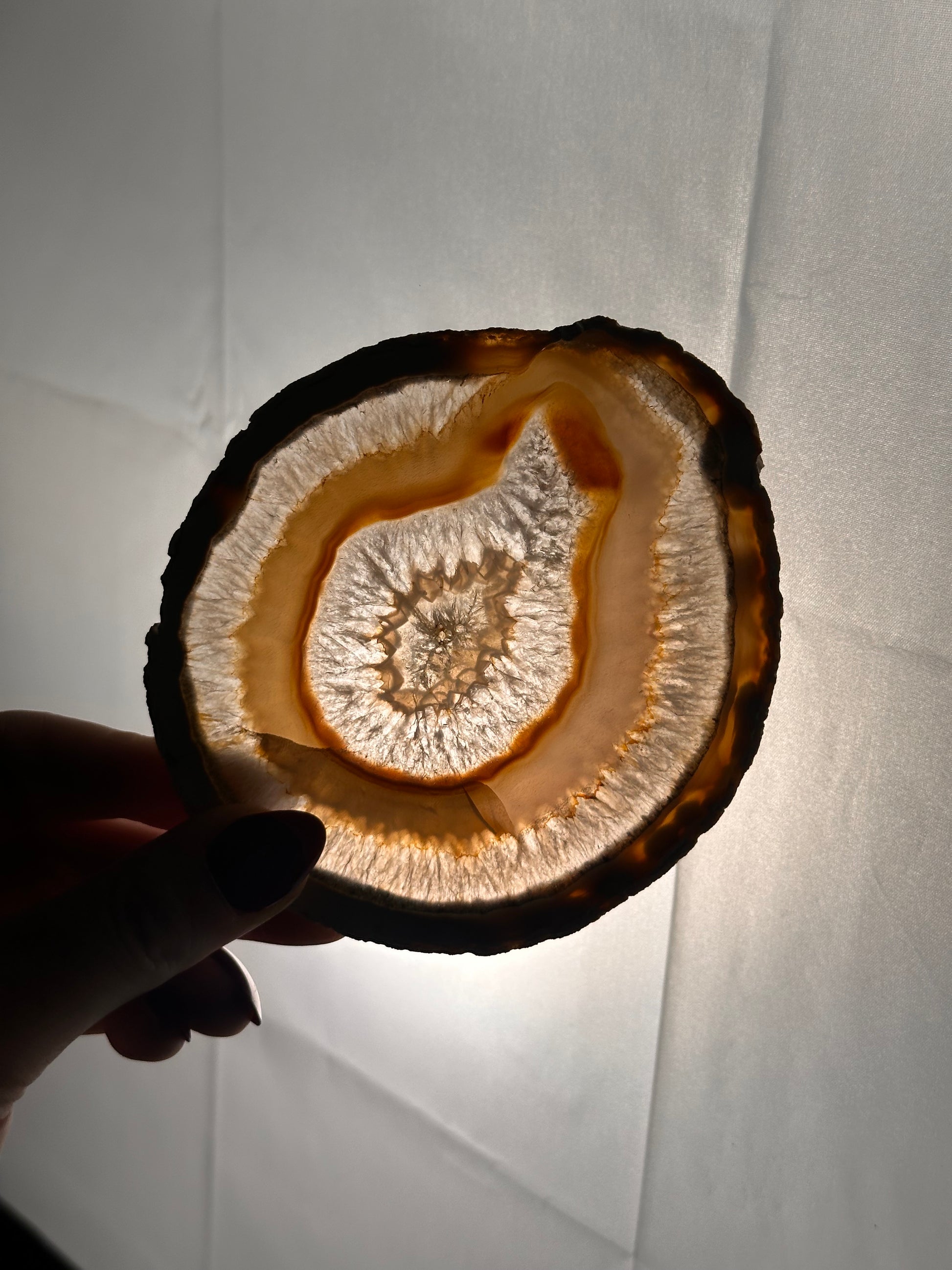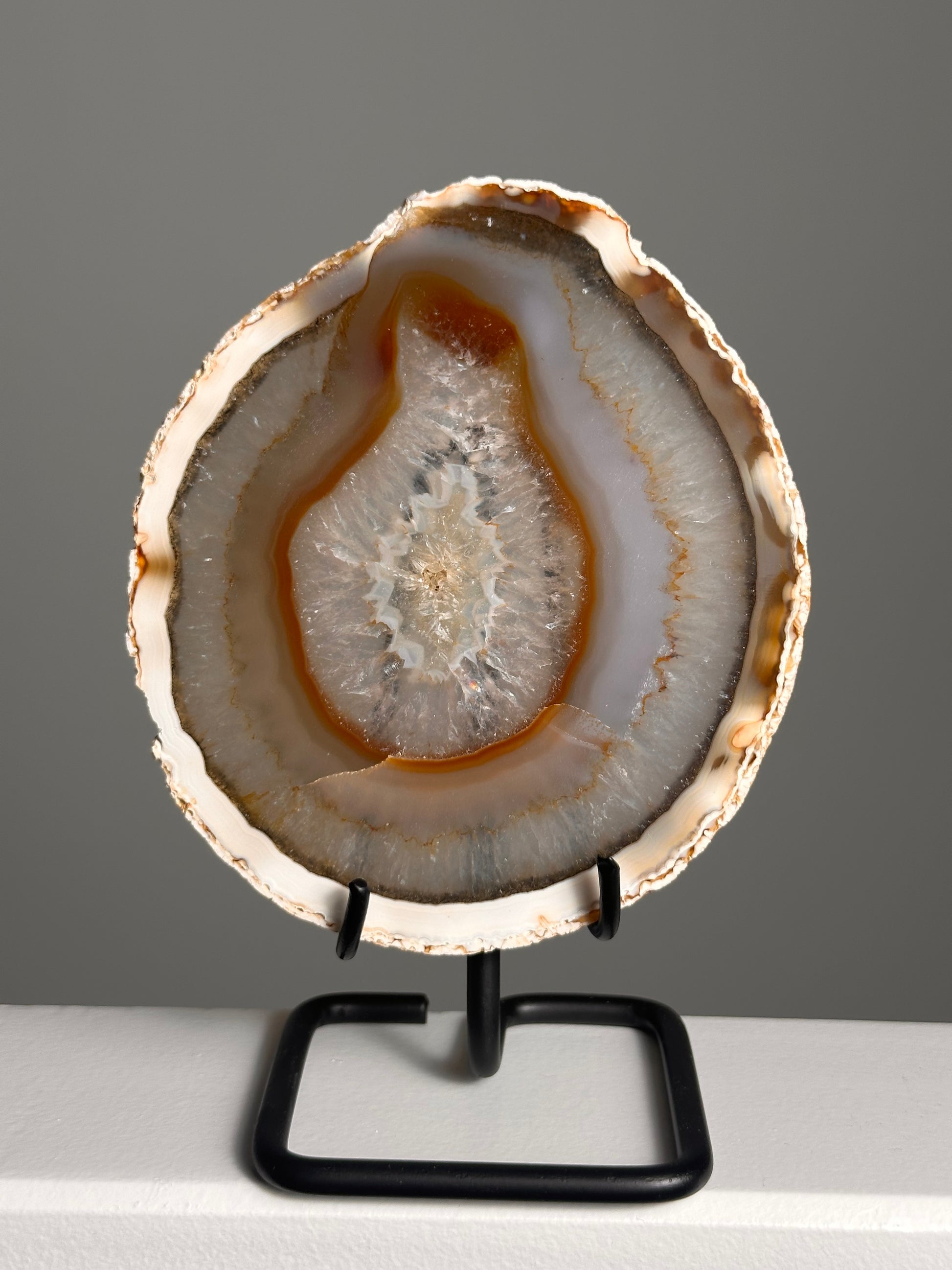 Een agaat schijf is meer dan een decoratiestuk het is een stukje kunst. Je kunt haar combineren met een standaard of een waxinelichthouder waar je de schijf in kunt plaatsen - beide zijn los verkrijgbaar.