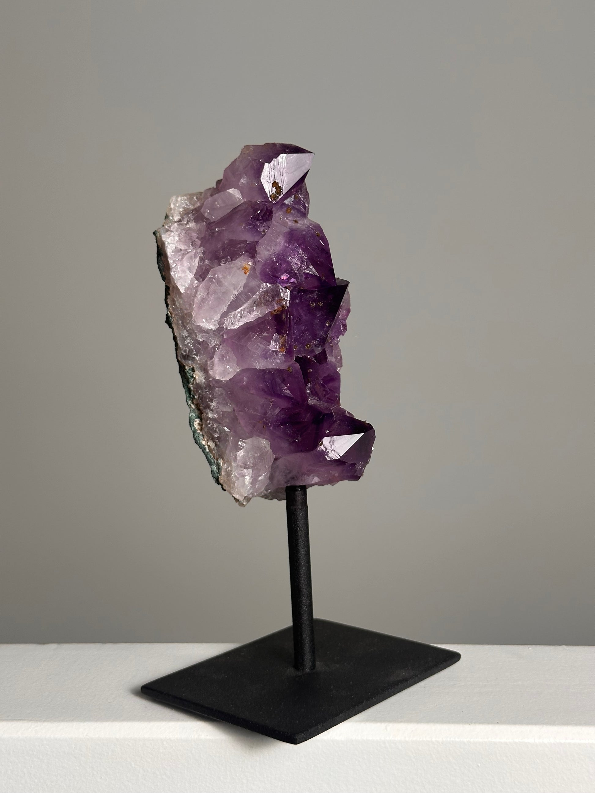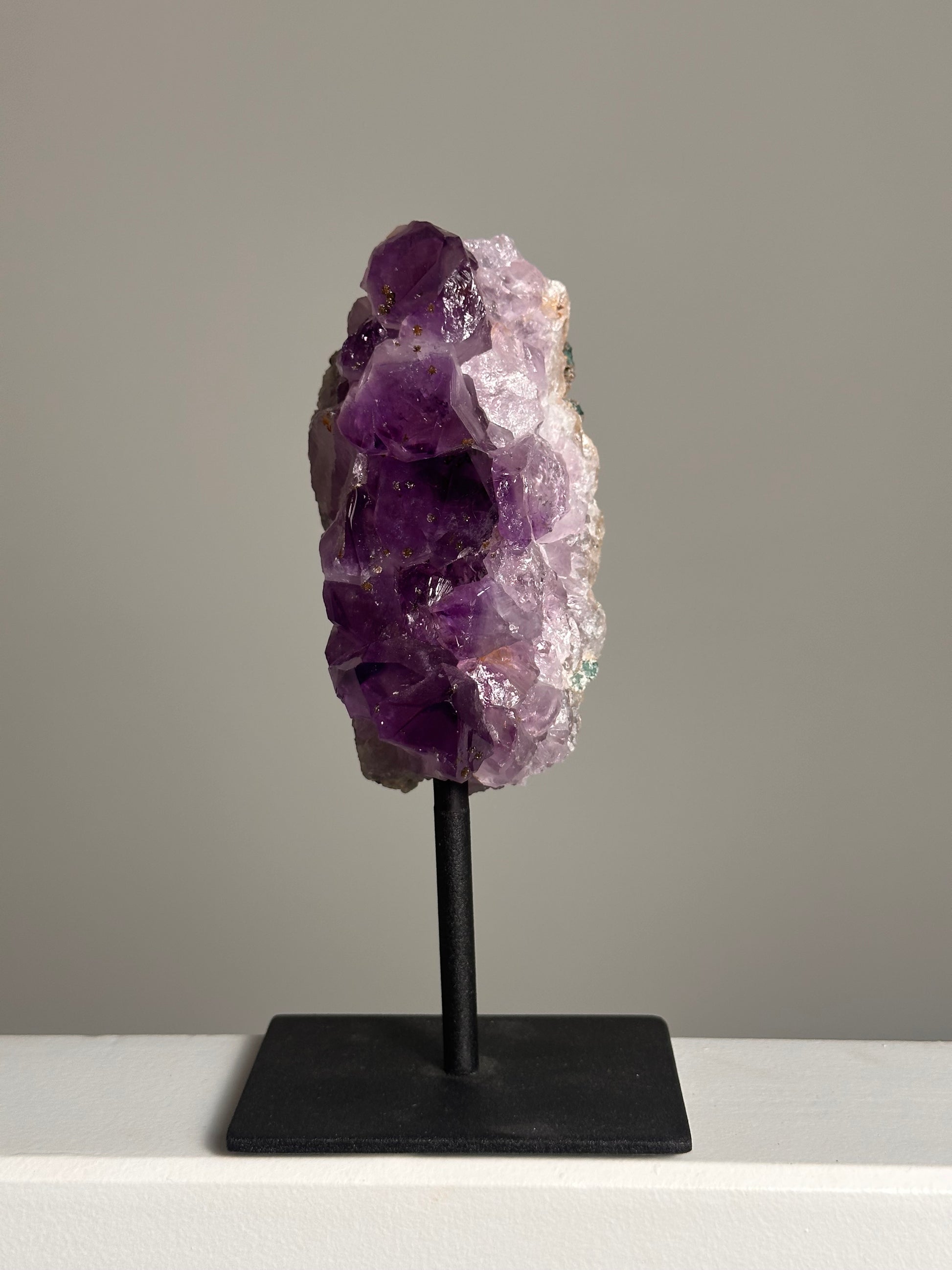 Een Amethist op standaard is een prachtige manier om de kracht van moeder natuur in huis te halen. Door haar diepe paarse kleur en ruwe kristalstructuur valt ze meteen op. Of je haar nu op een plank, dressoir of bij een raam zet. Dankzij de stevige standaard is ze stabiel en vanuit elke hoek goed zichtbaar. In het licht komt haar glans extra mooi tot haar recht.