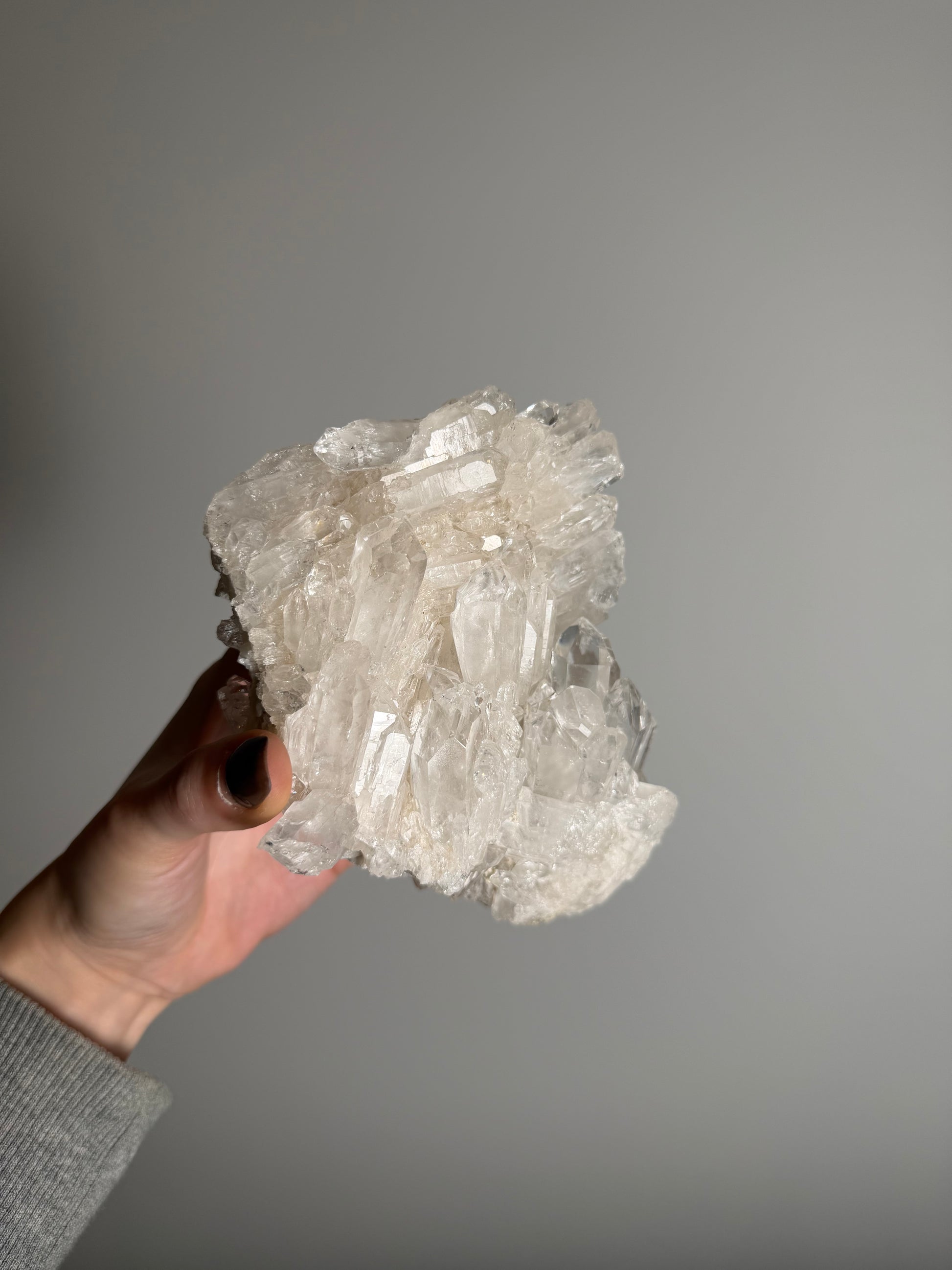 Prachtig statement piece voor in huis! Deze cluster kun je op heel veel verschillende manieren neerzetten, omdat deze rondom vol bergkristal kristallen zit. Er zitten ook heel veel regenboogjes in! De foto doet haar echt niet waard, dus mocht je een filmpje willen ontvangen kun je me gerust een berichtje sturen.