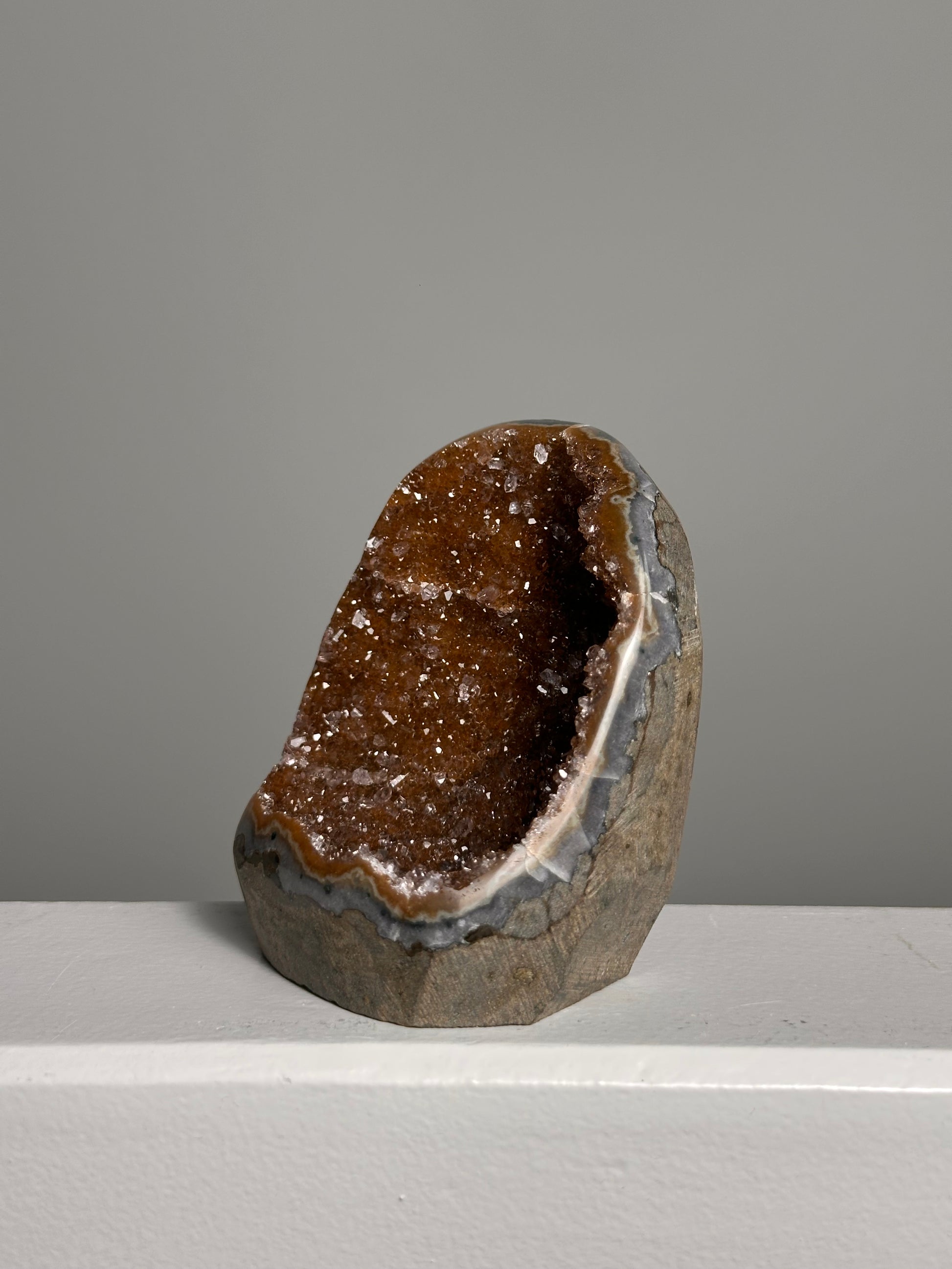 Door de glad gezaagde onderzijde kan deze Galaxy Amethist zelfstandig staan en komt ze prachtig tot haar recht in elke ruimte. De bijzondere kleuren (variërend van aardetinten tot warme gele en rode kleuren) geven deze vorm van Amethist haar naam.