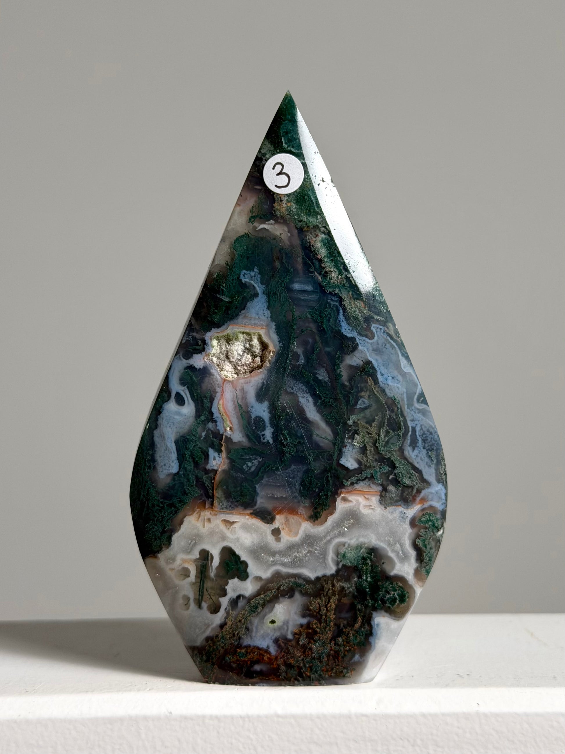 Deze sculptuur / vlam van Mosagaat is een echte eyecatcher in je interieur. Zet haar vooral in het licht neer zodat haar kristallen mooi uitkomen!