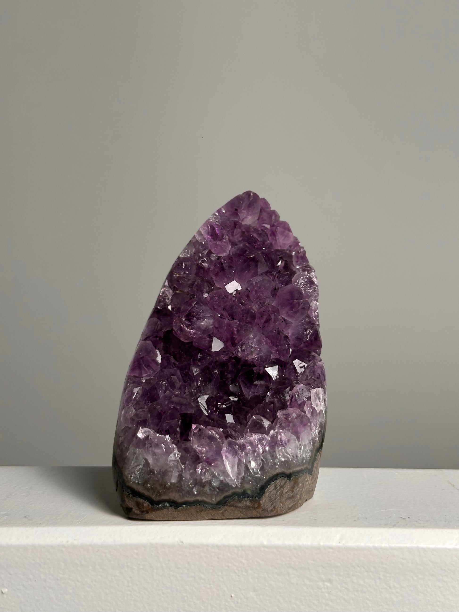 Door de glad gezaagde onderzijde kan deze prachtige Amethist zelfstandig staan, en kun je hem mooi neerzetten in de ruimte.