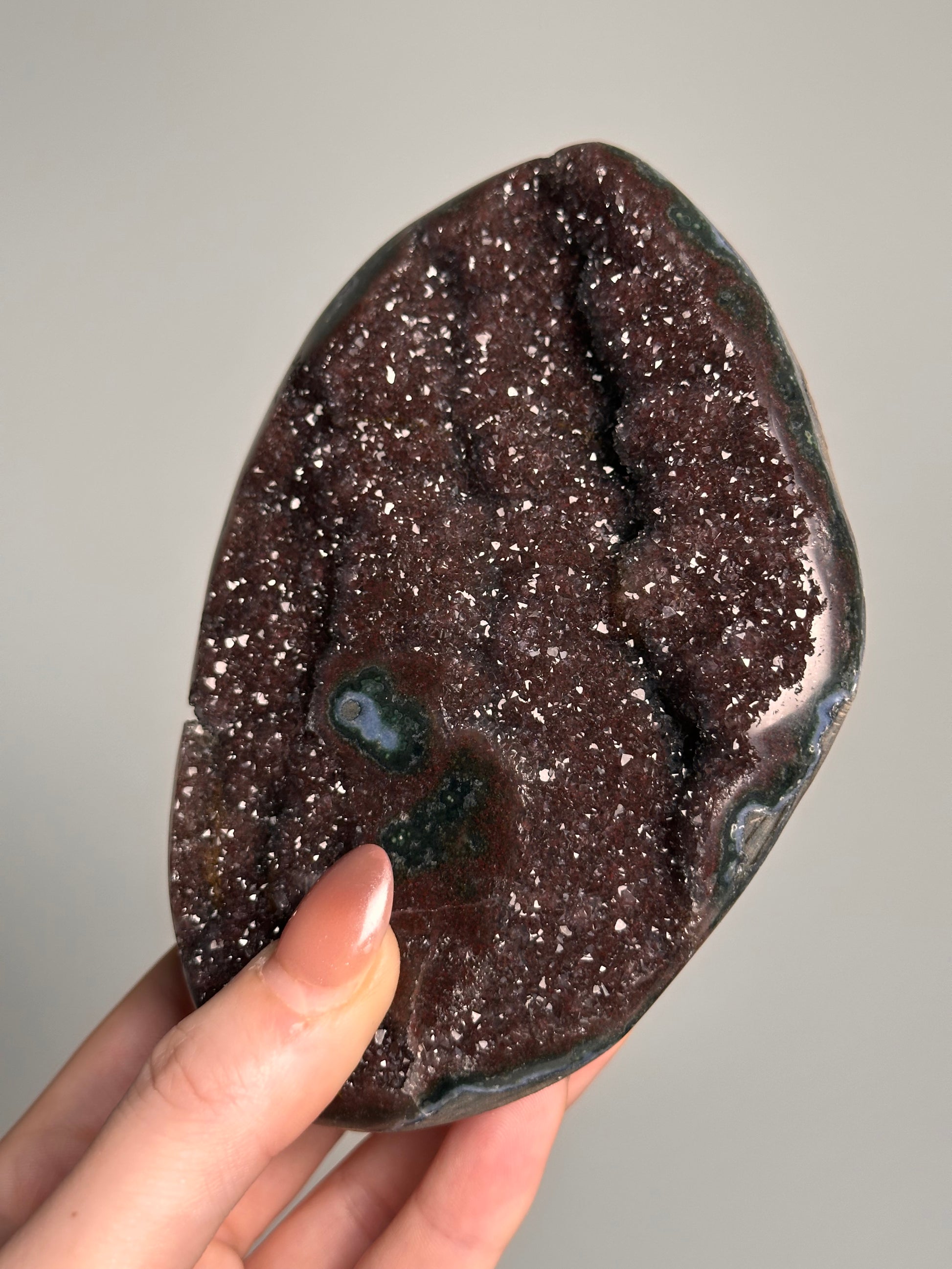 Amethist is een paarse kwartssoort en heeft veel verschillende krachten. Amethist werkt beschermend, zuiverend, ontspannend, brengt harmonie en innerlijke rust. De steen helpt je eerlijk te zijn naar jezelf toe zoals bijvoorbeeld om verslavingen te herkennen en aan te pakken. Amethist helpt bij het krijgen van inzicht in je gedrag en in de keuzes die je maakt. Ook kan Amethist helpen bij het verwerken van emotionele pijn.