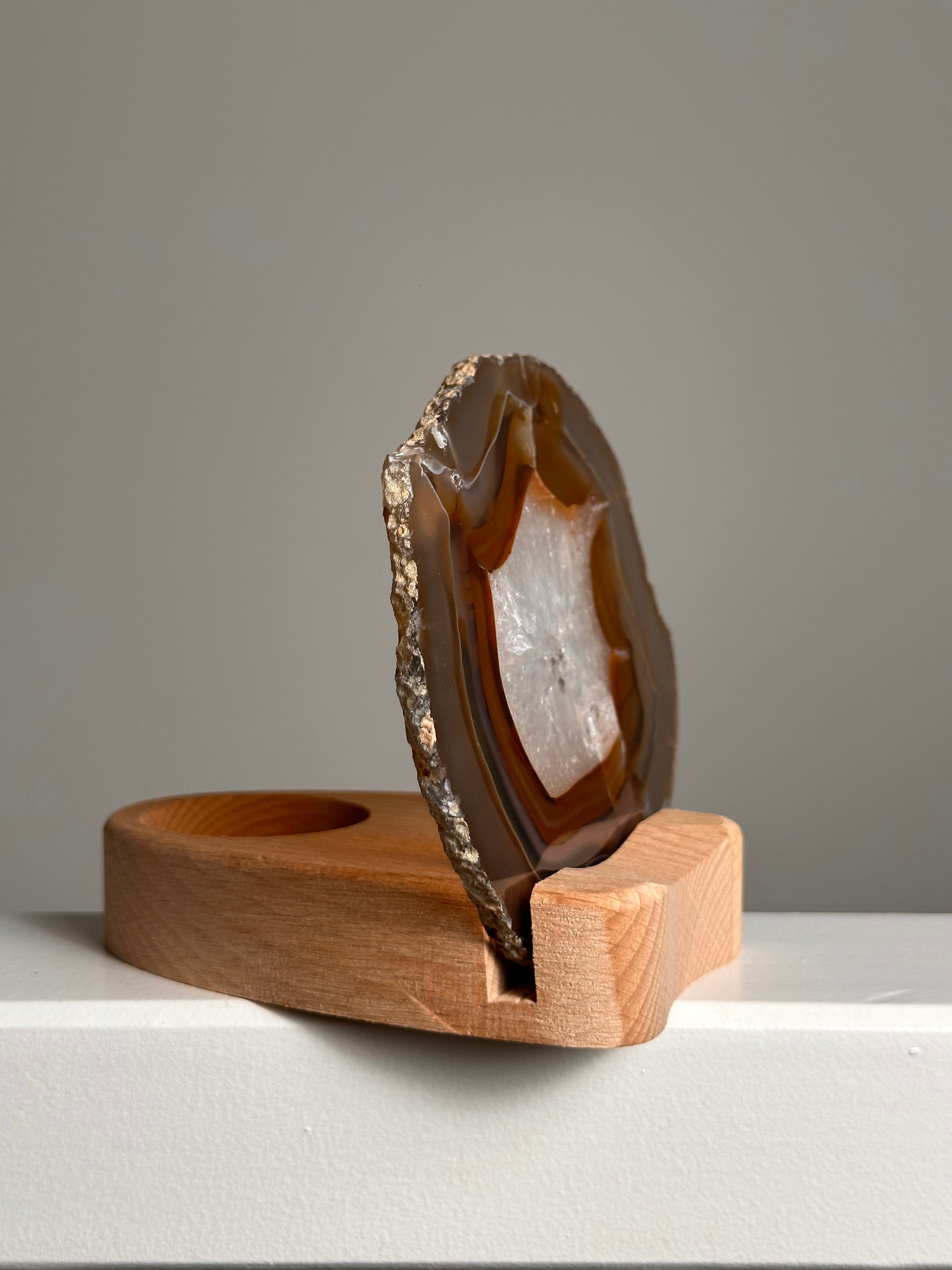 Je ontvangt alleen de Waxinelichthouder, de Agaat schijven staan onder het kopje “Gepolijst”
